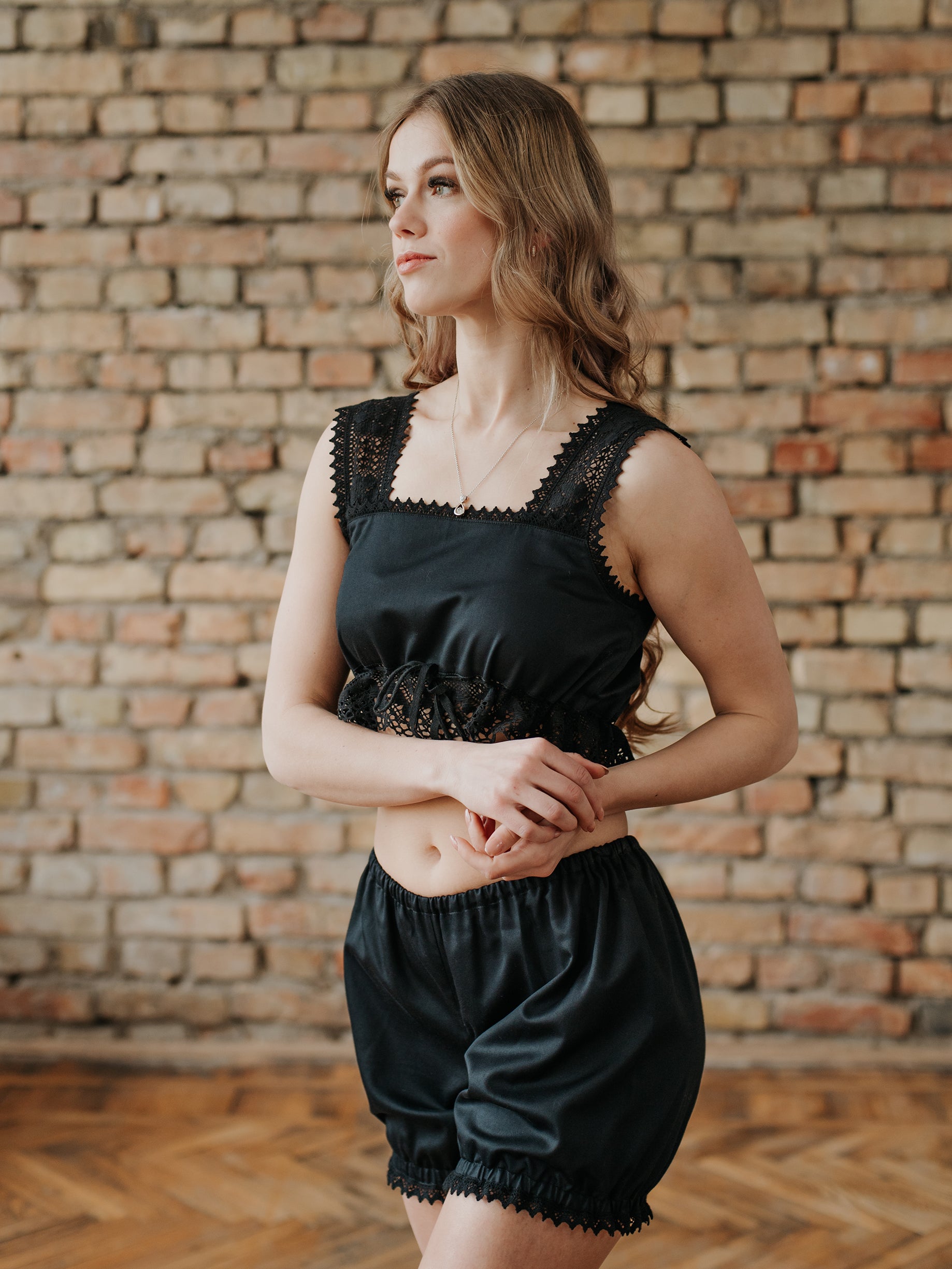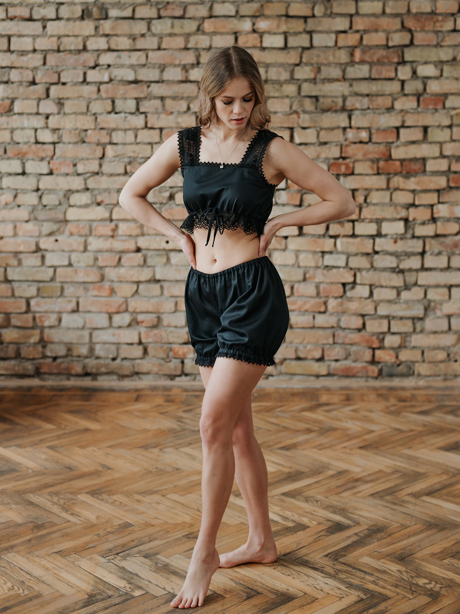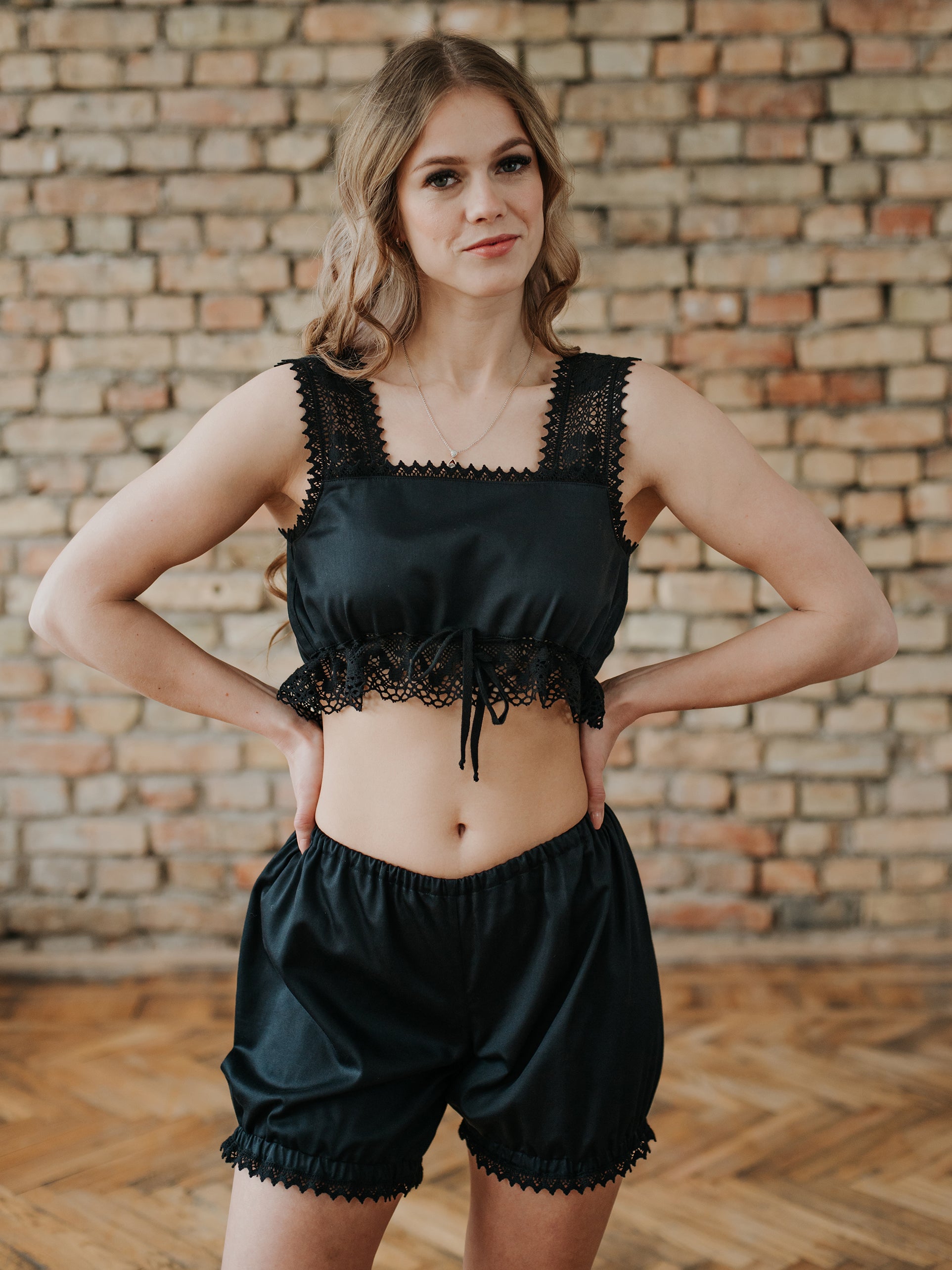 This vintage inspired pajamas set is bringing together contemporary pyjama fashion with Victorian nightwear tendencies around 1880 when the very first undies for women were made. (Yes! Up until then women wore no underwear! Can you imagine?)