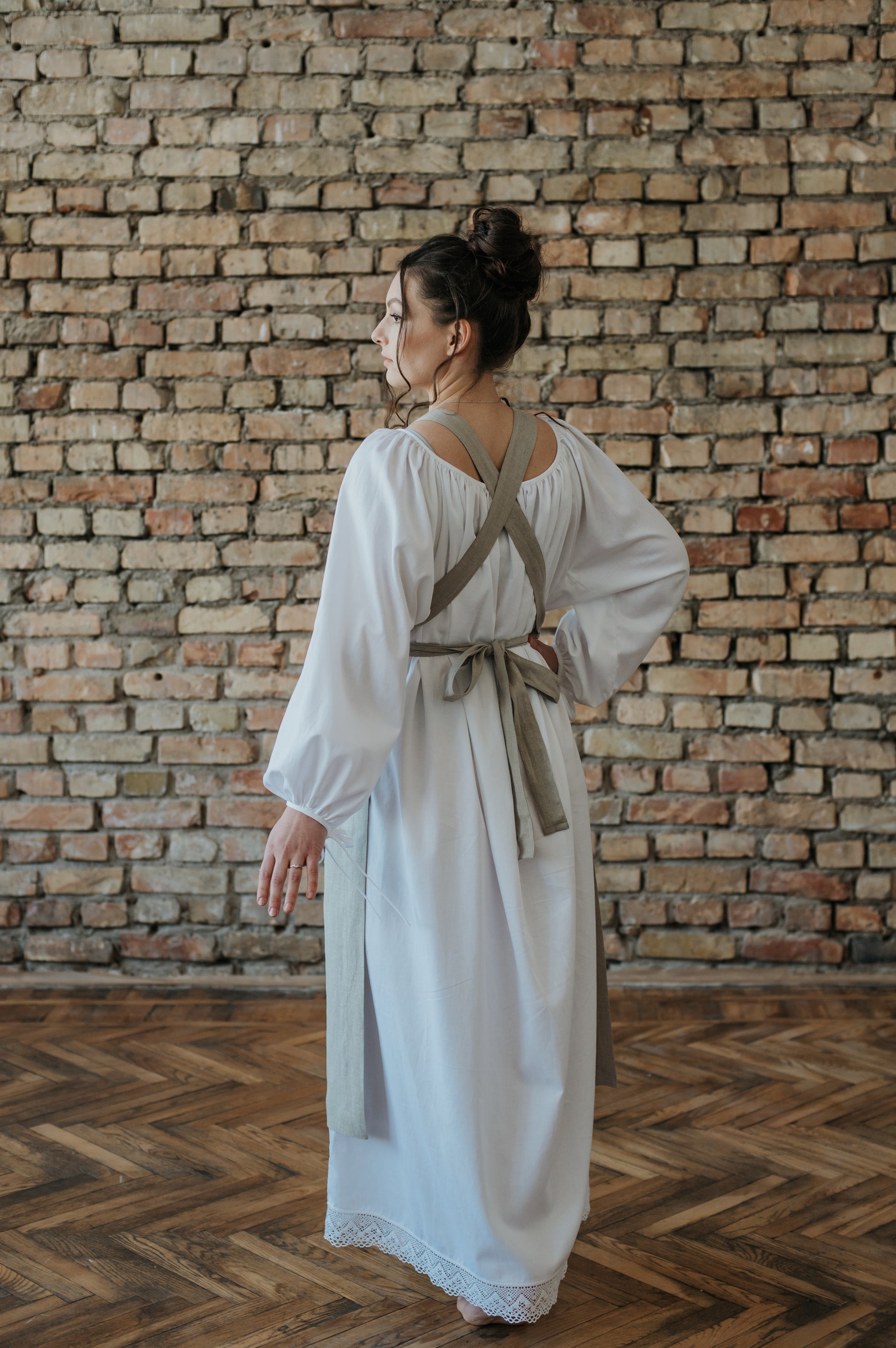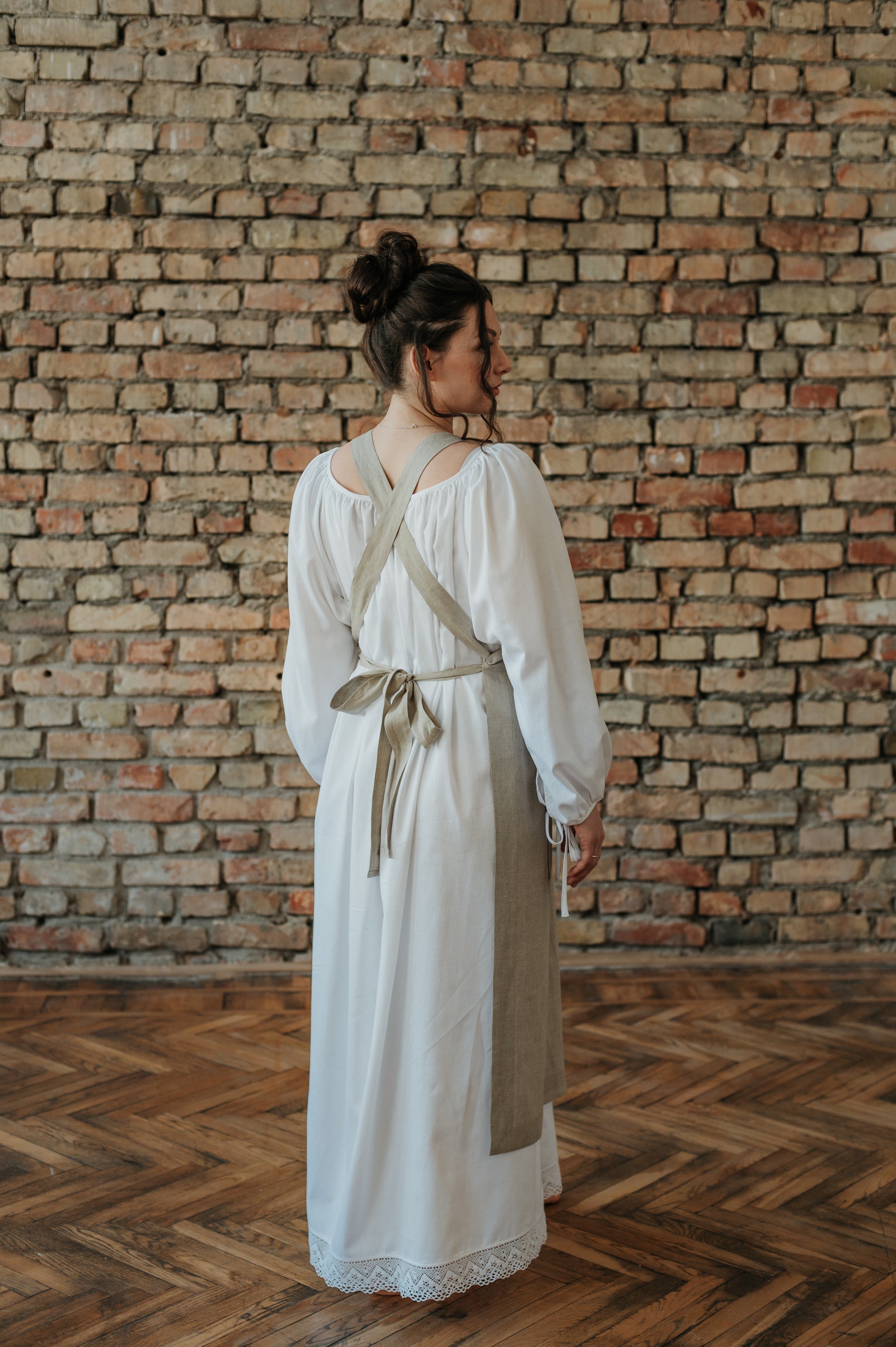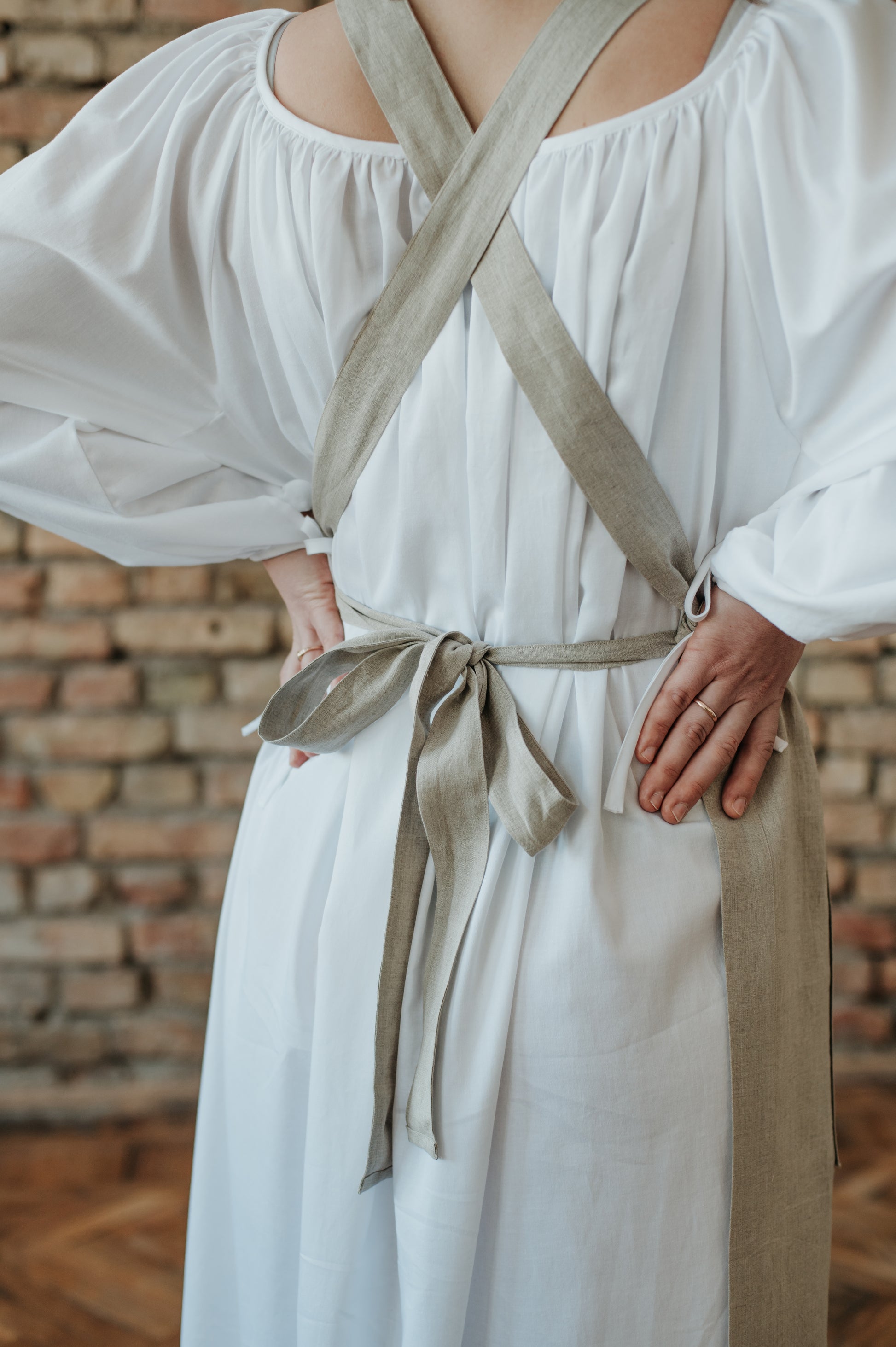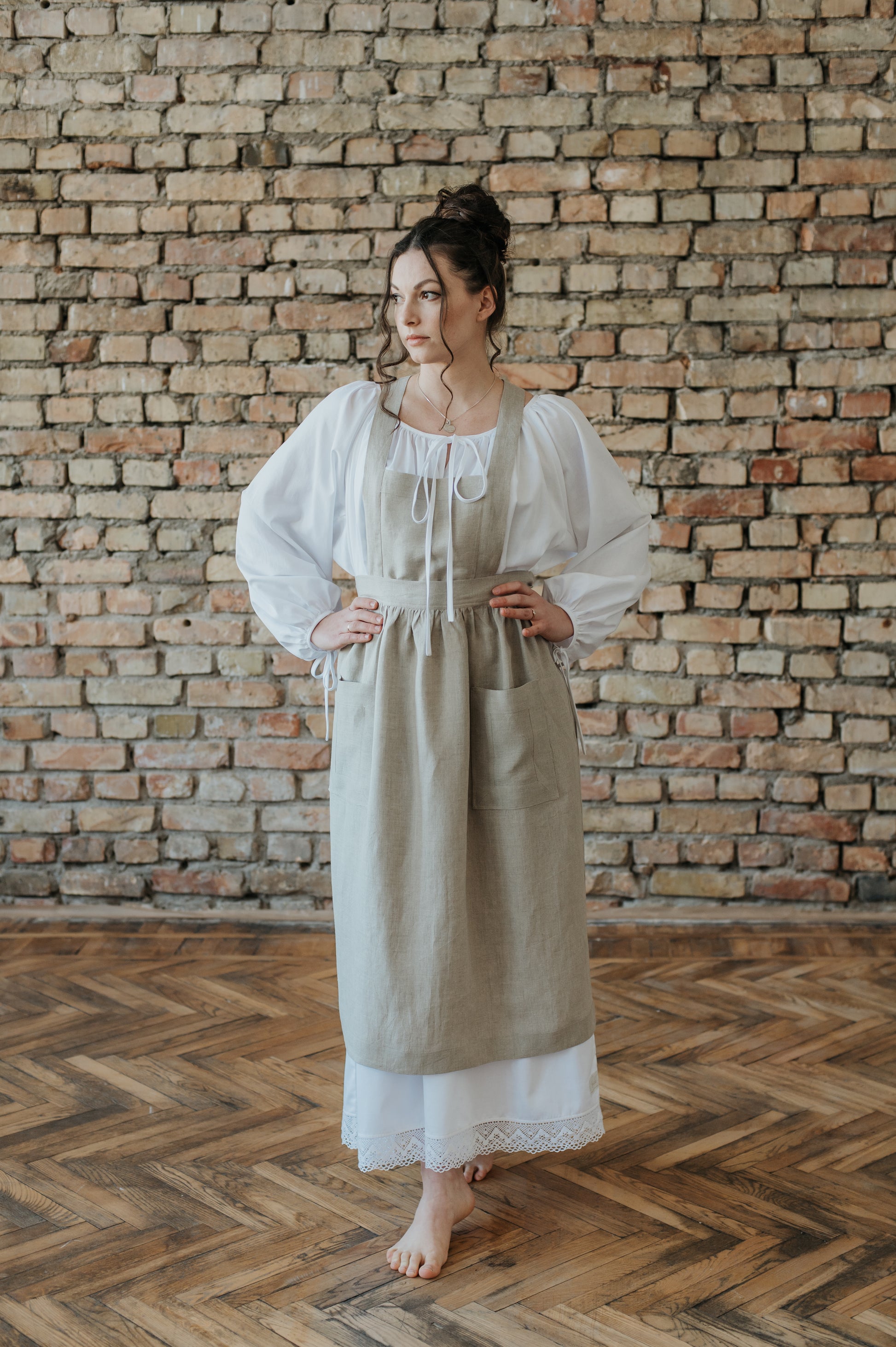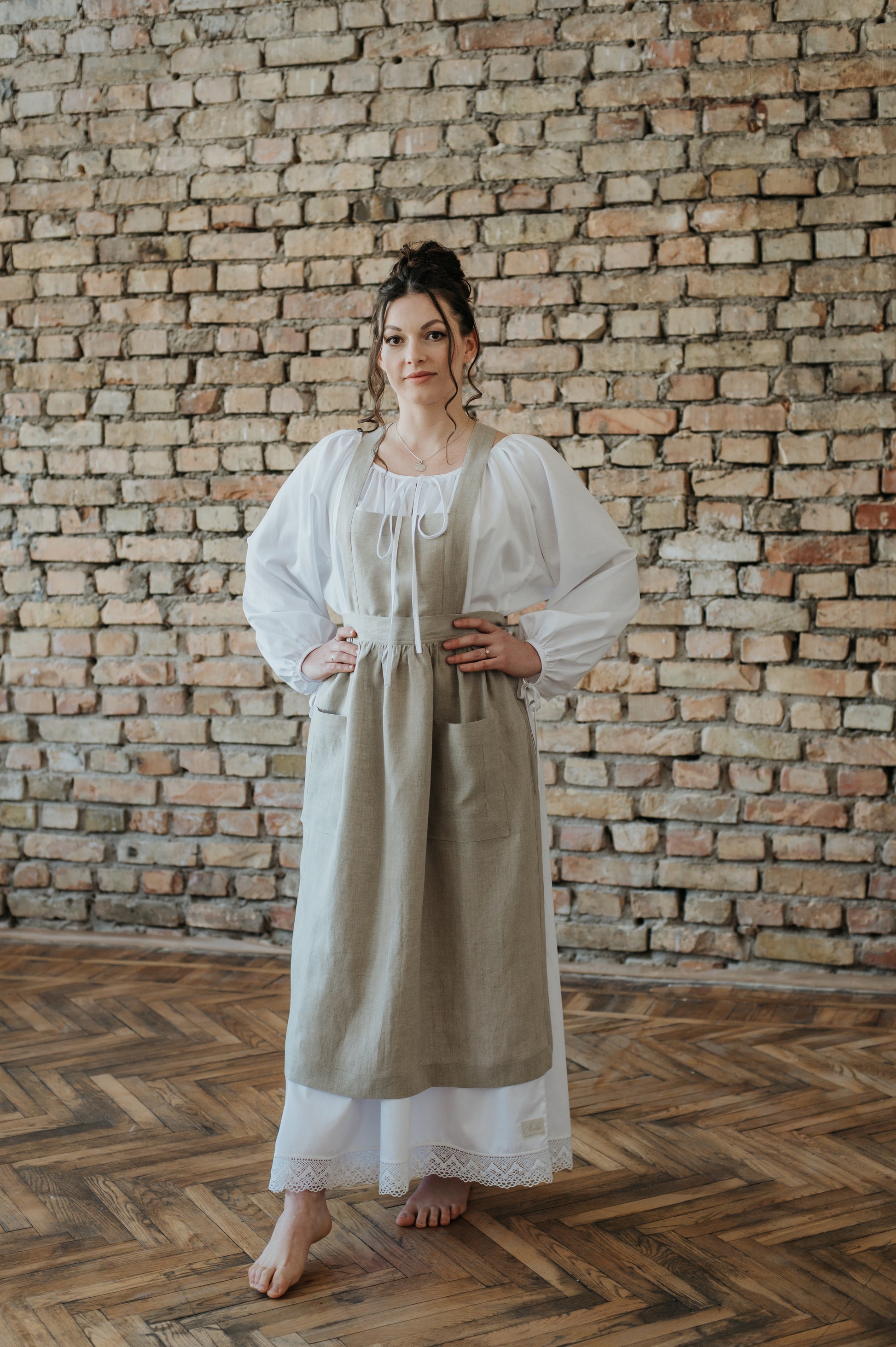 Mrs.Graham's Cottagecore Apron, crafted in unbleached, sustainable linen, beautifully encapsulates the romantic essence of a bygone Victorian era, designed for the modern woman with a love for rustic elegance. Its adjustable, cross-back design and front pockets combine functionality with style, ideal for kitchen, gardening, or as a fashionable accessory. This versatile pinafore apron, inspired by the warmth of a forest home and freshly baked bread, offers comfort and practicality, making it a unique addition to the cottagecore romantic wardrobe. It's vintage charm and practical design make it stand out as an essential piece for those who cherish timeless fashion with a whimsical twist.