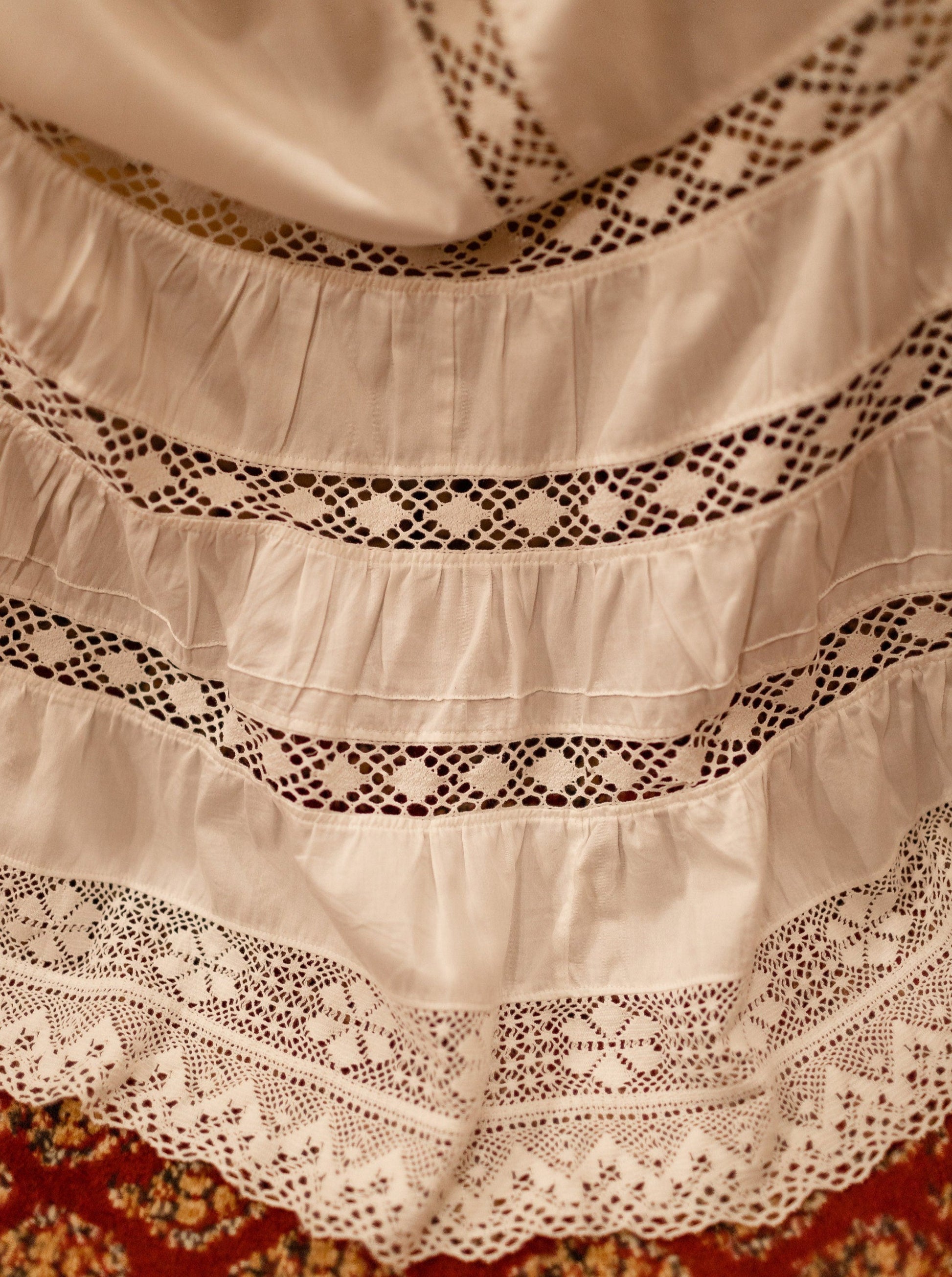 Delicate Beauty is a vintage romanticisms inspired nightgown that reveals true feminine essence in its design. Each inch of the nightgown is delicately hand-crafted and treasured. Made from a soft cotton fabric it is cut for loose fit around shoulders with a drop-off effect. Adjustable string under the bust ensures pretty and comfortable fit. The lace sew-ins and elongated back of the gown adds just the right amount of romantic elegance to it. Perfect for your wedding night or really...just any day (or night) of your life when you are ready to embrace that delicate beauty that lives in every woman.