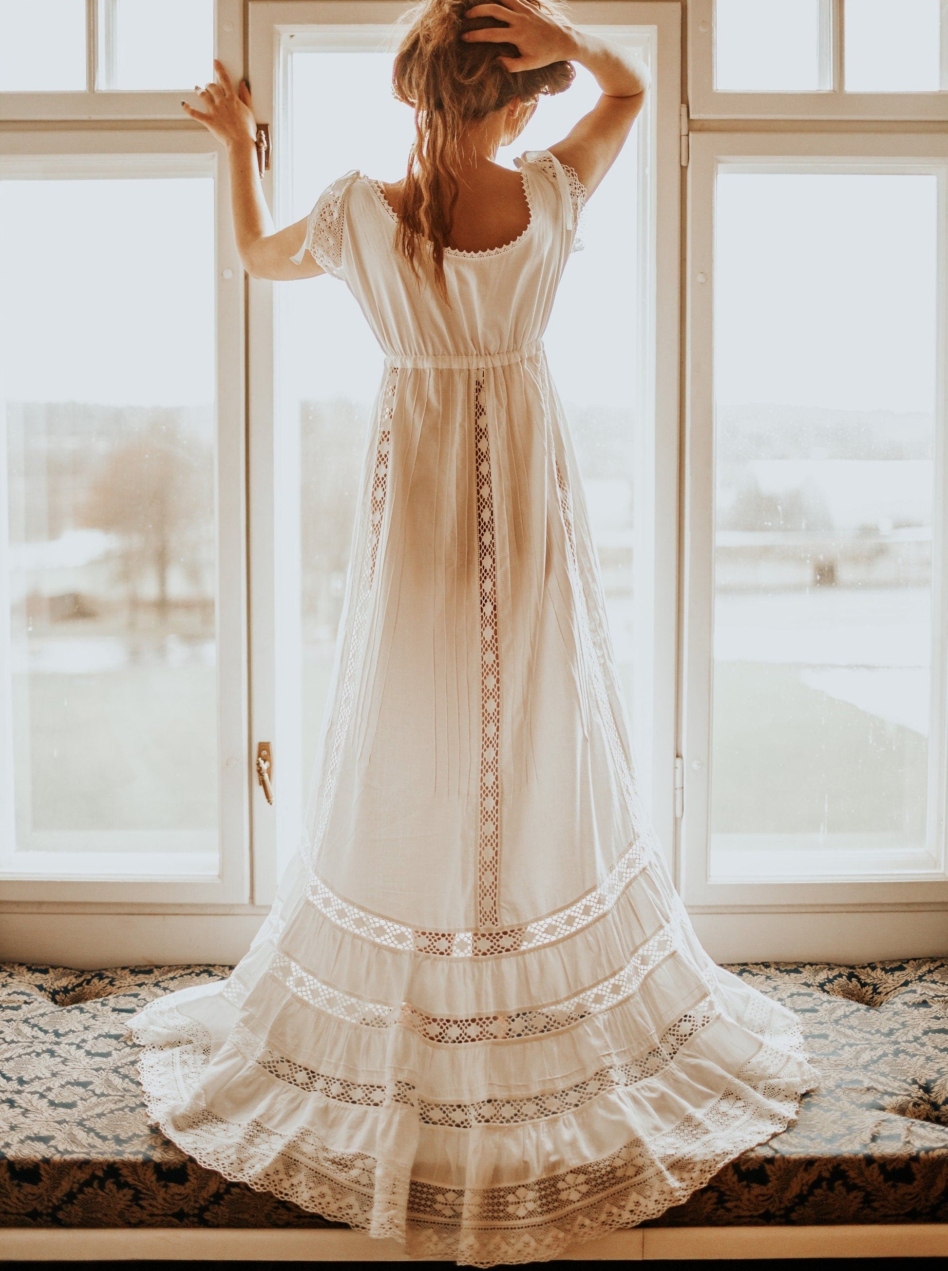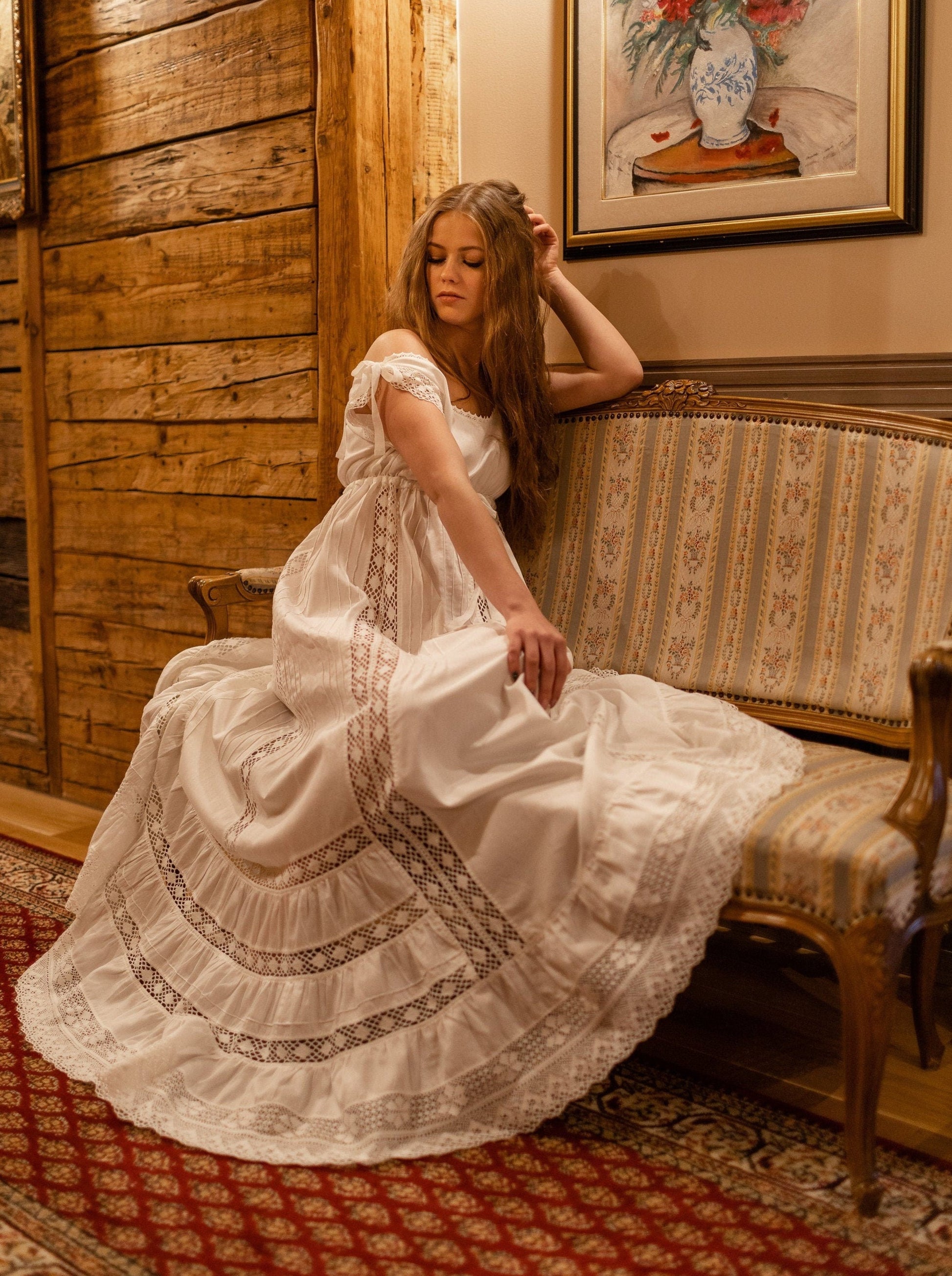 Delicate Beauty - Victorian Inspired Night Gown in White Cotton