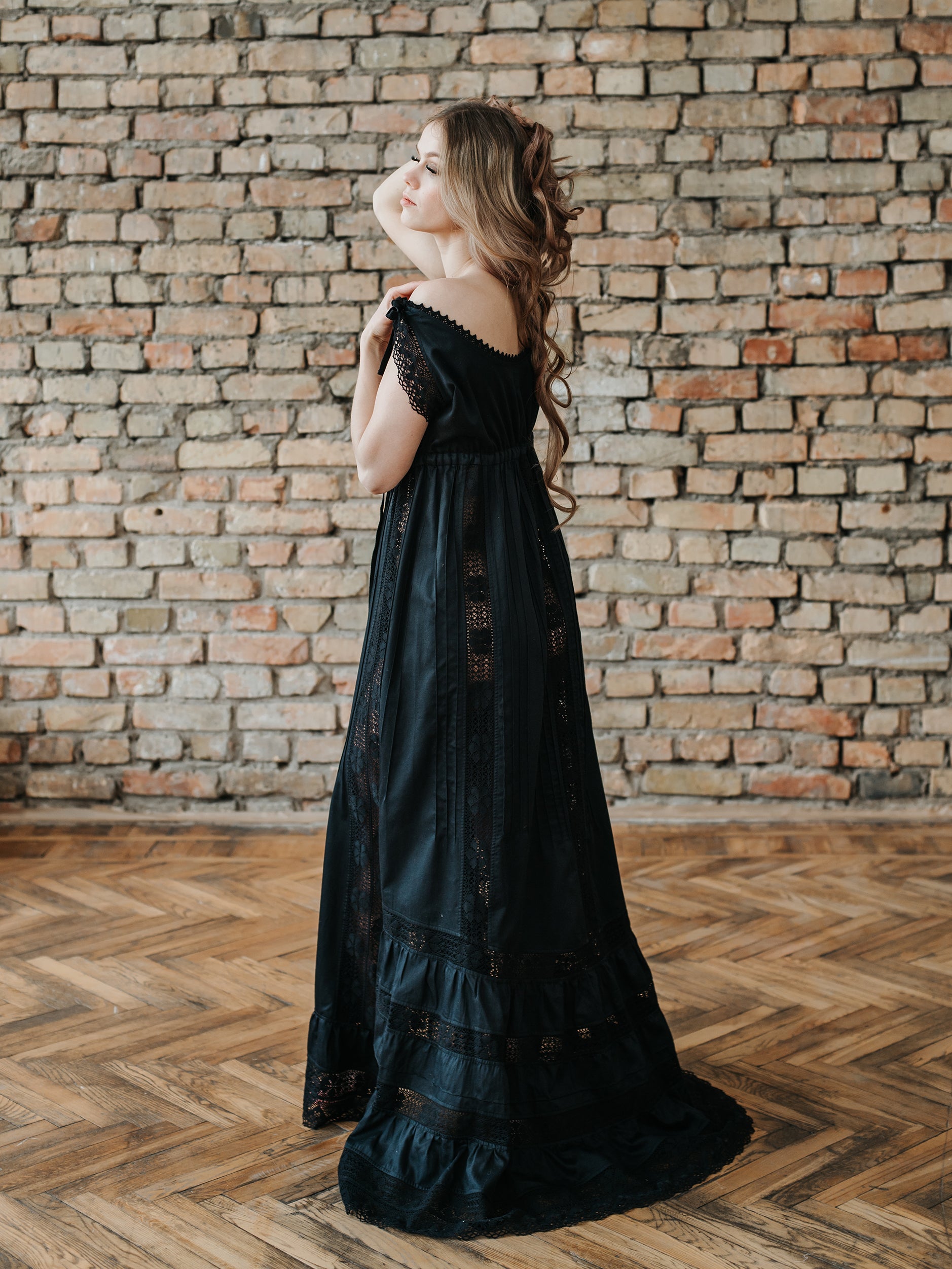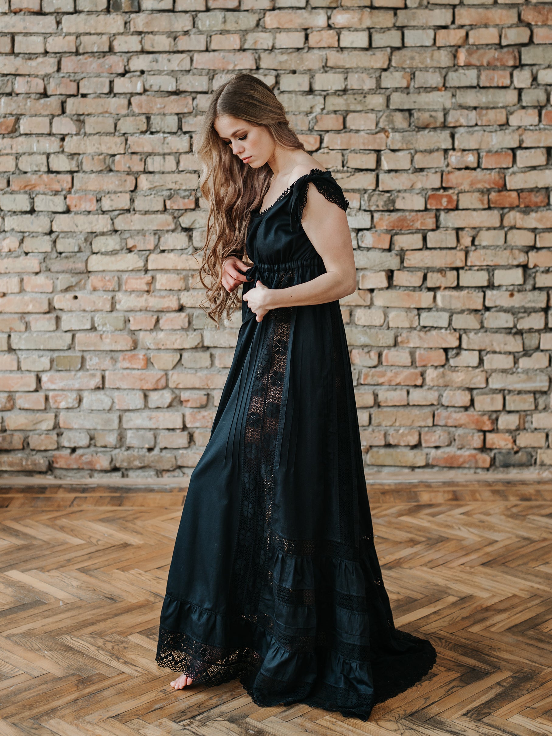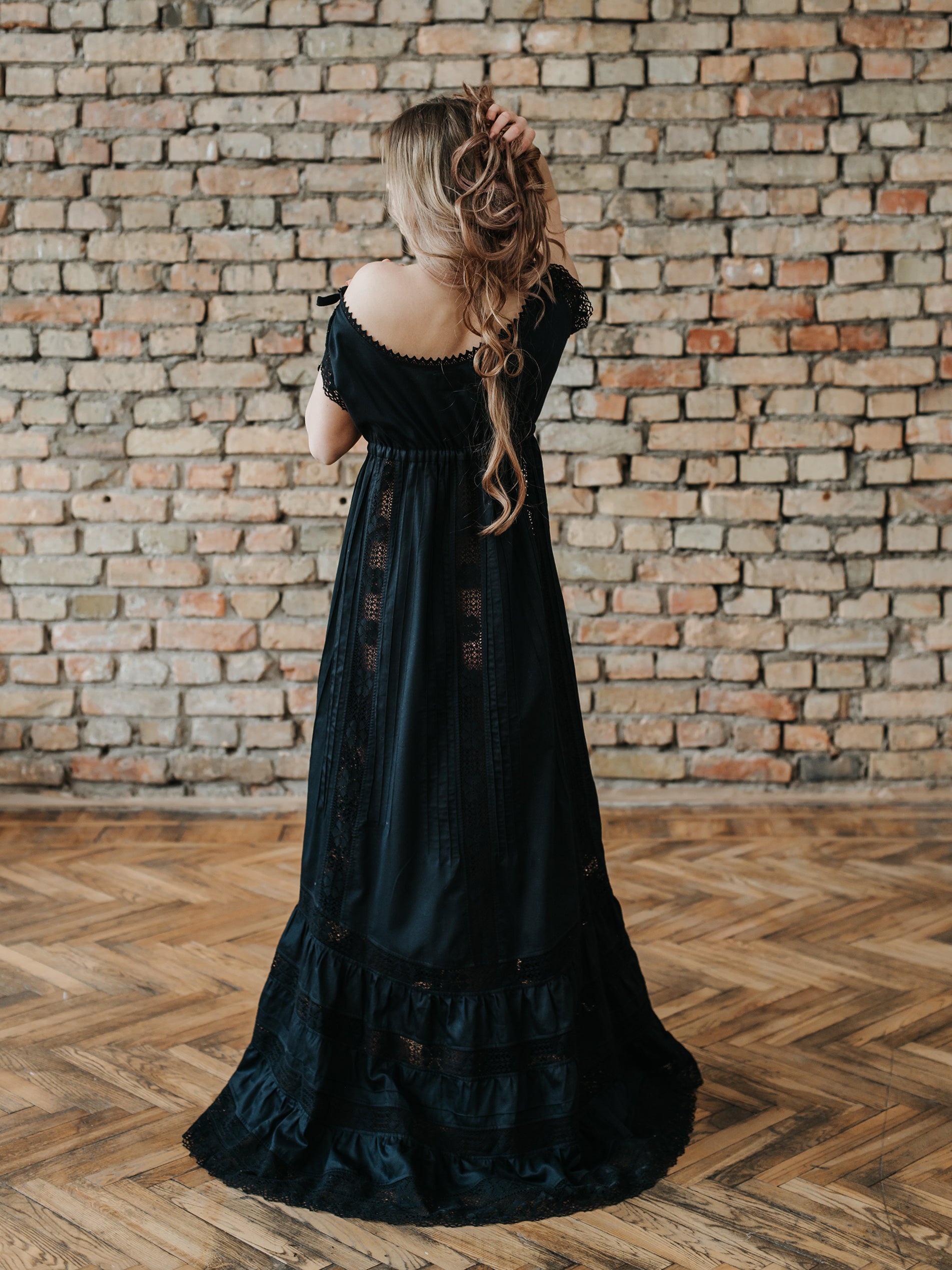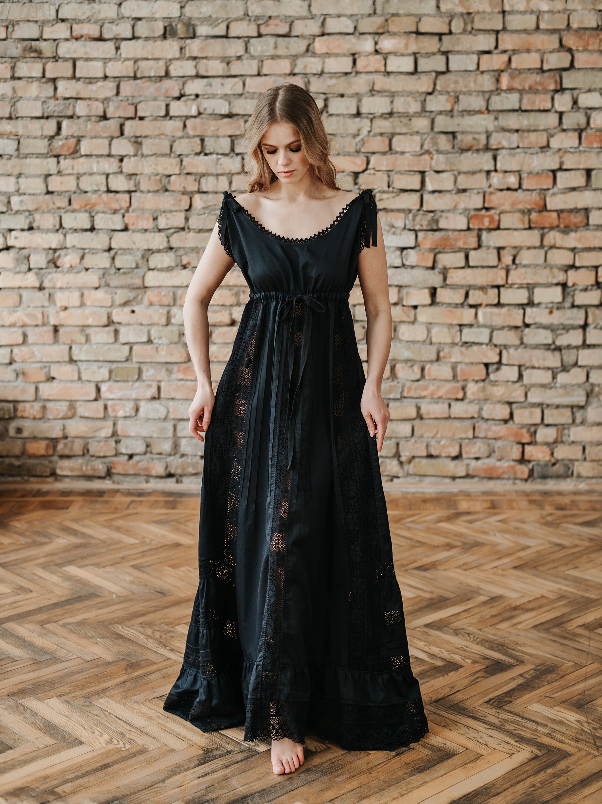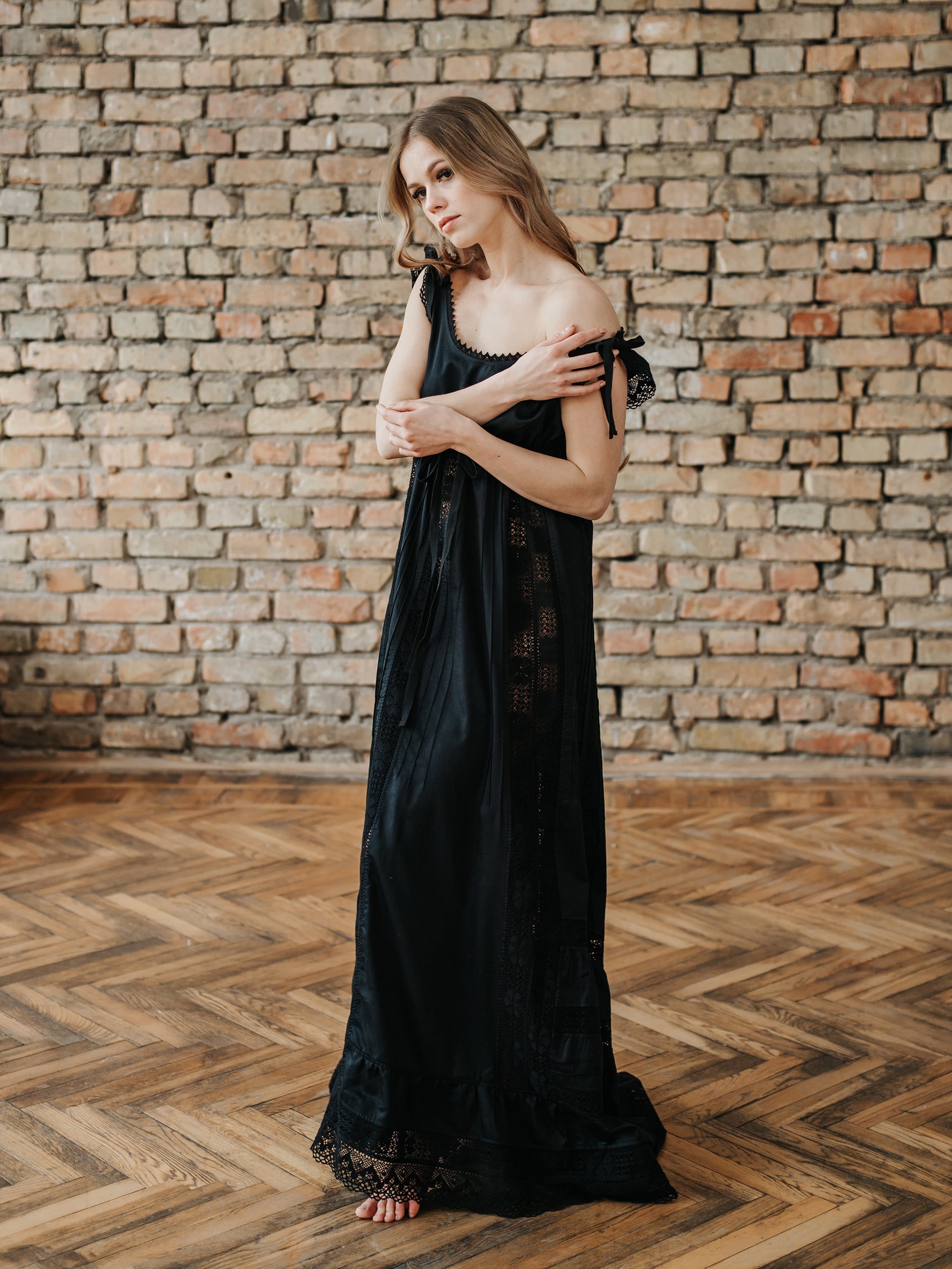 Delicate Beauty - Victorian Inspired Night Gown in Black Cotton