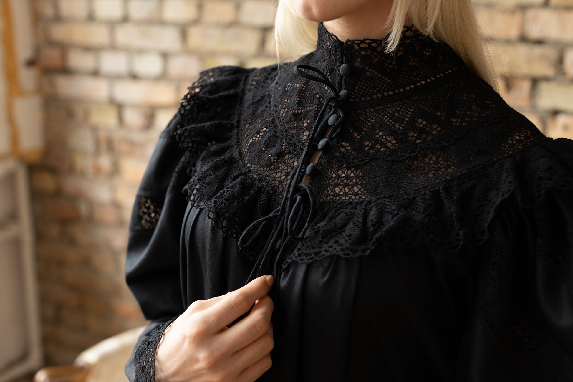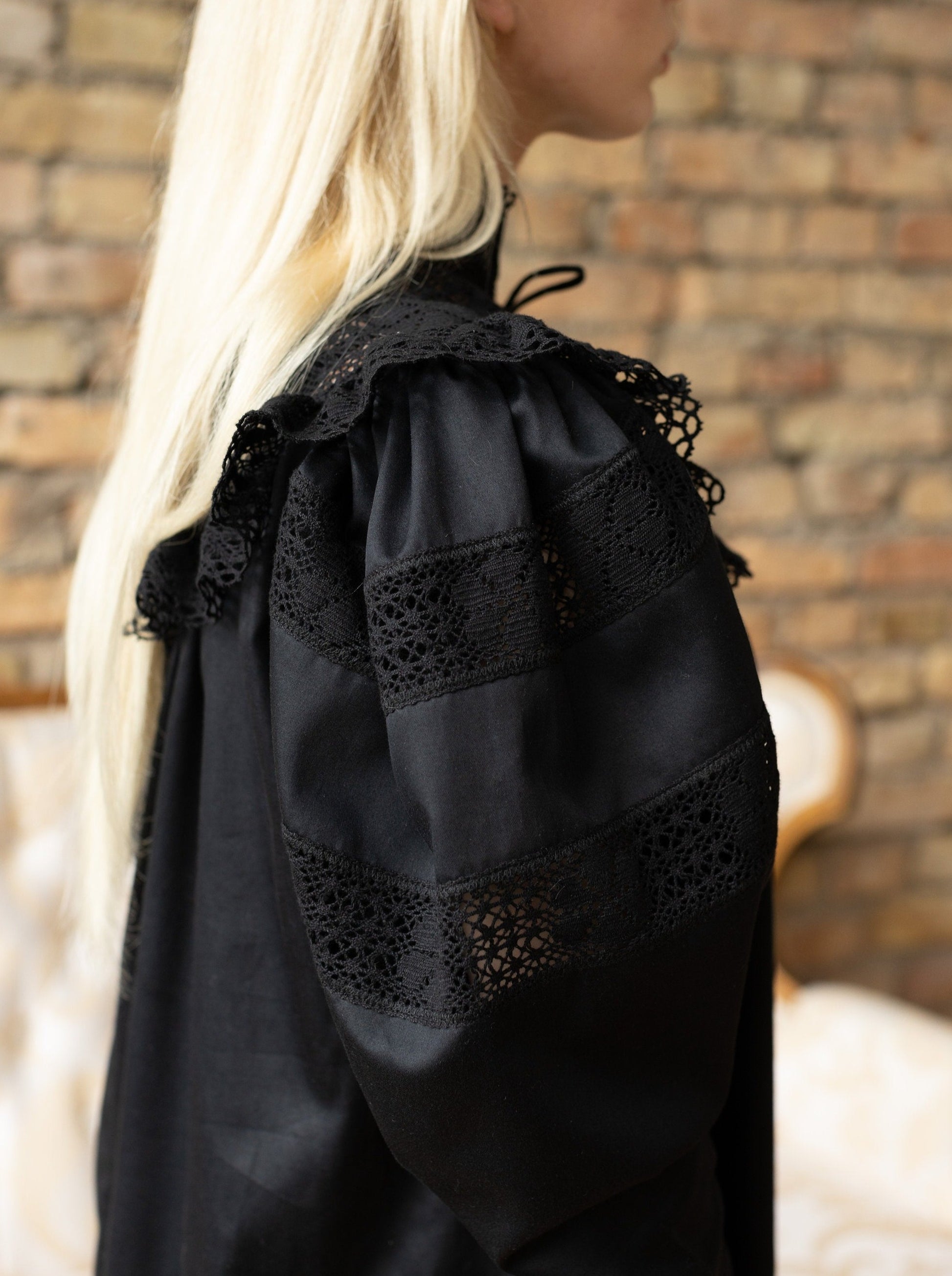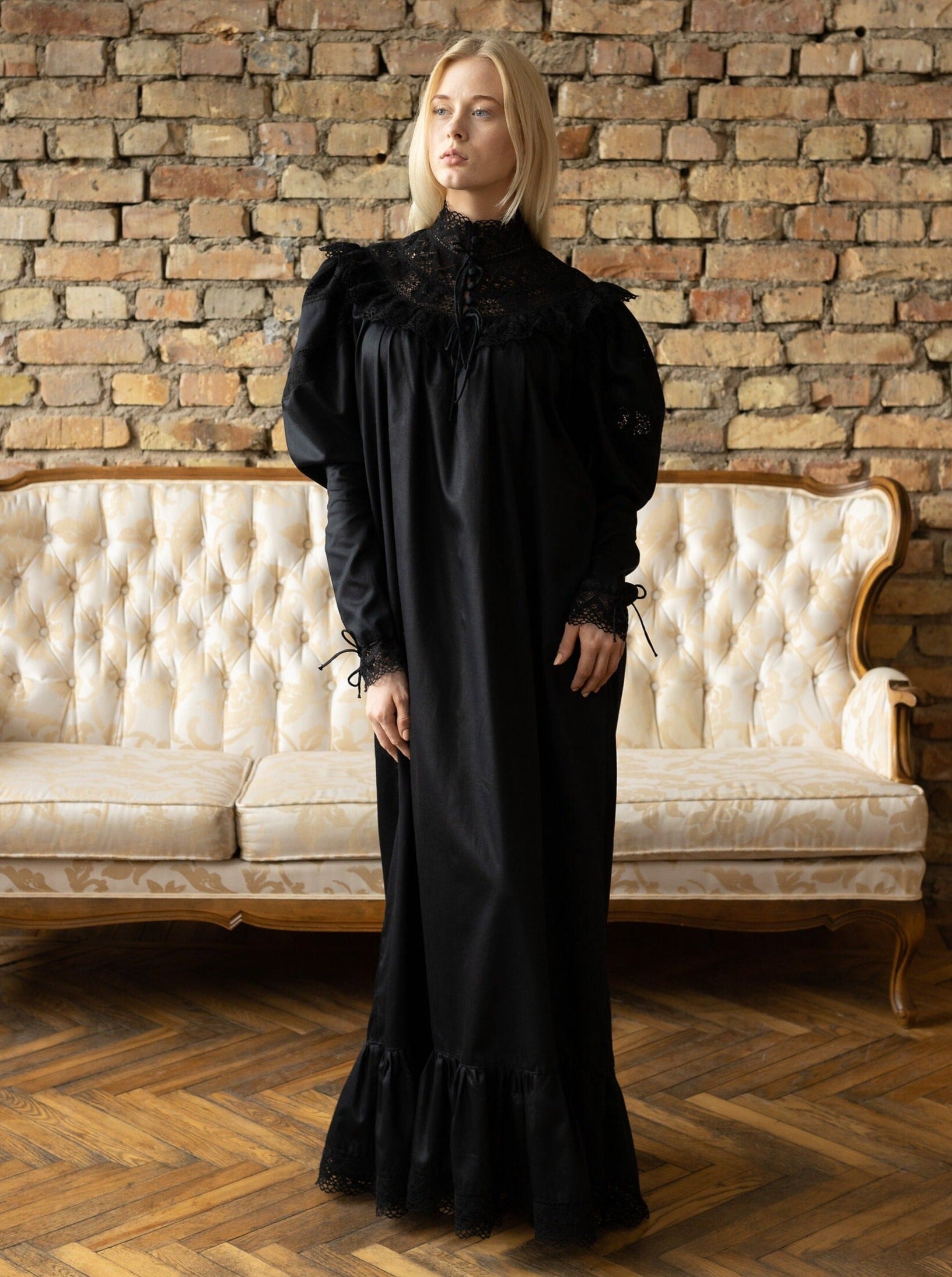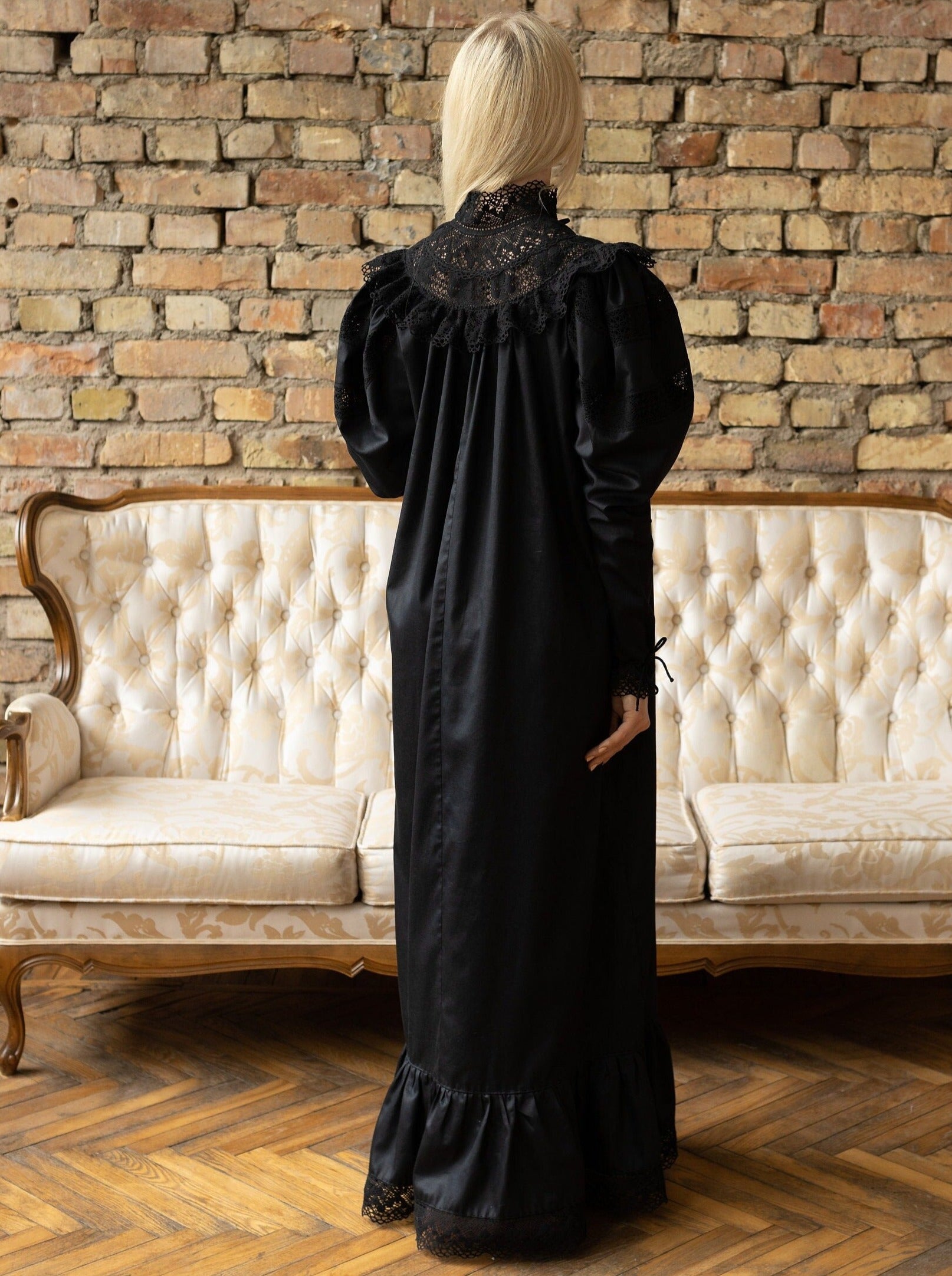 Edwardian Winter - Vintage Inspired Gown in Black Cotton