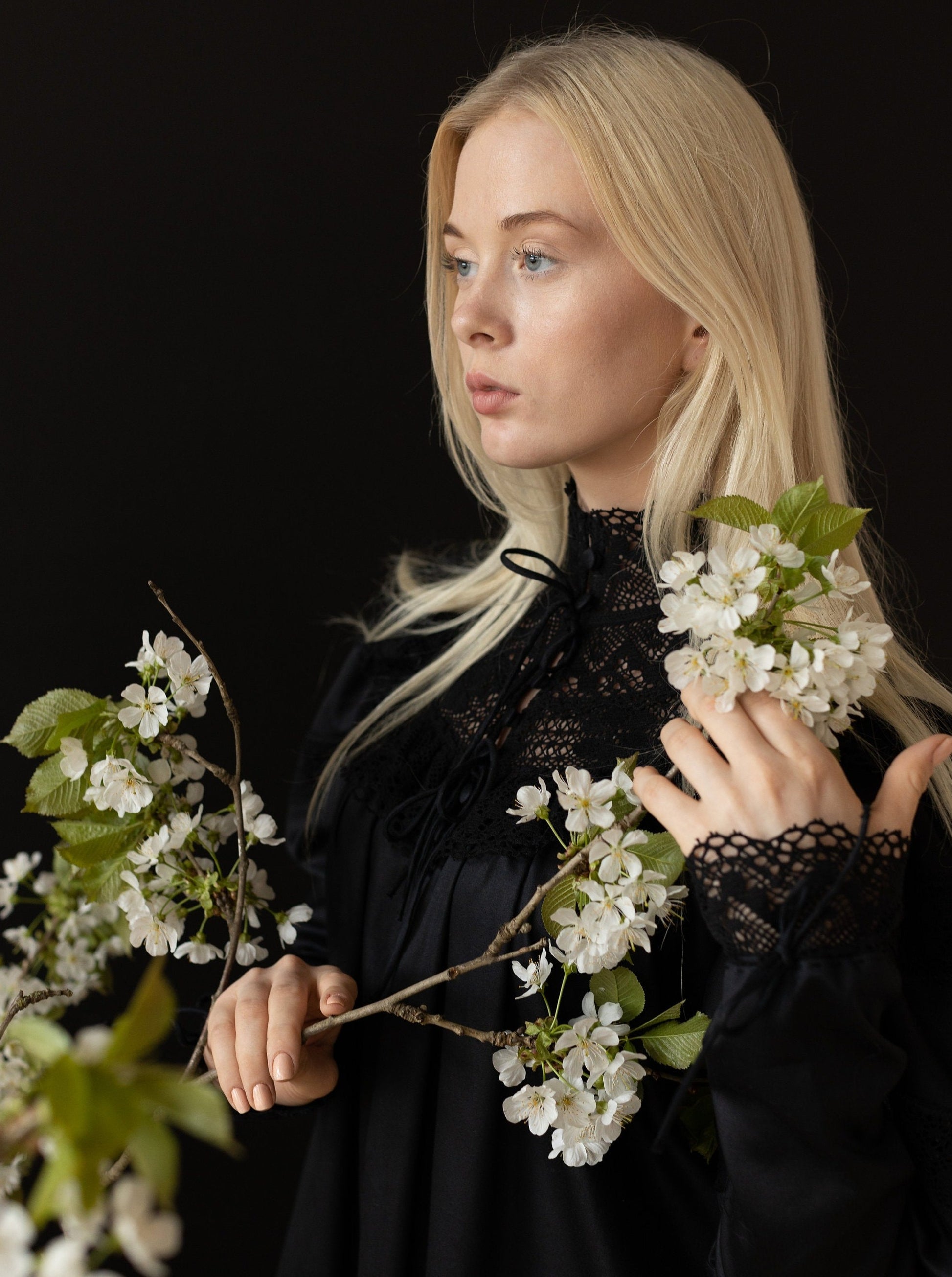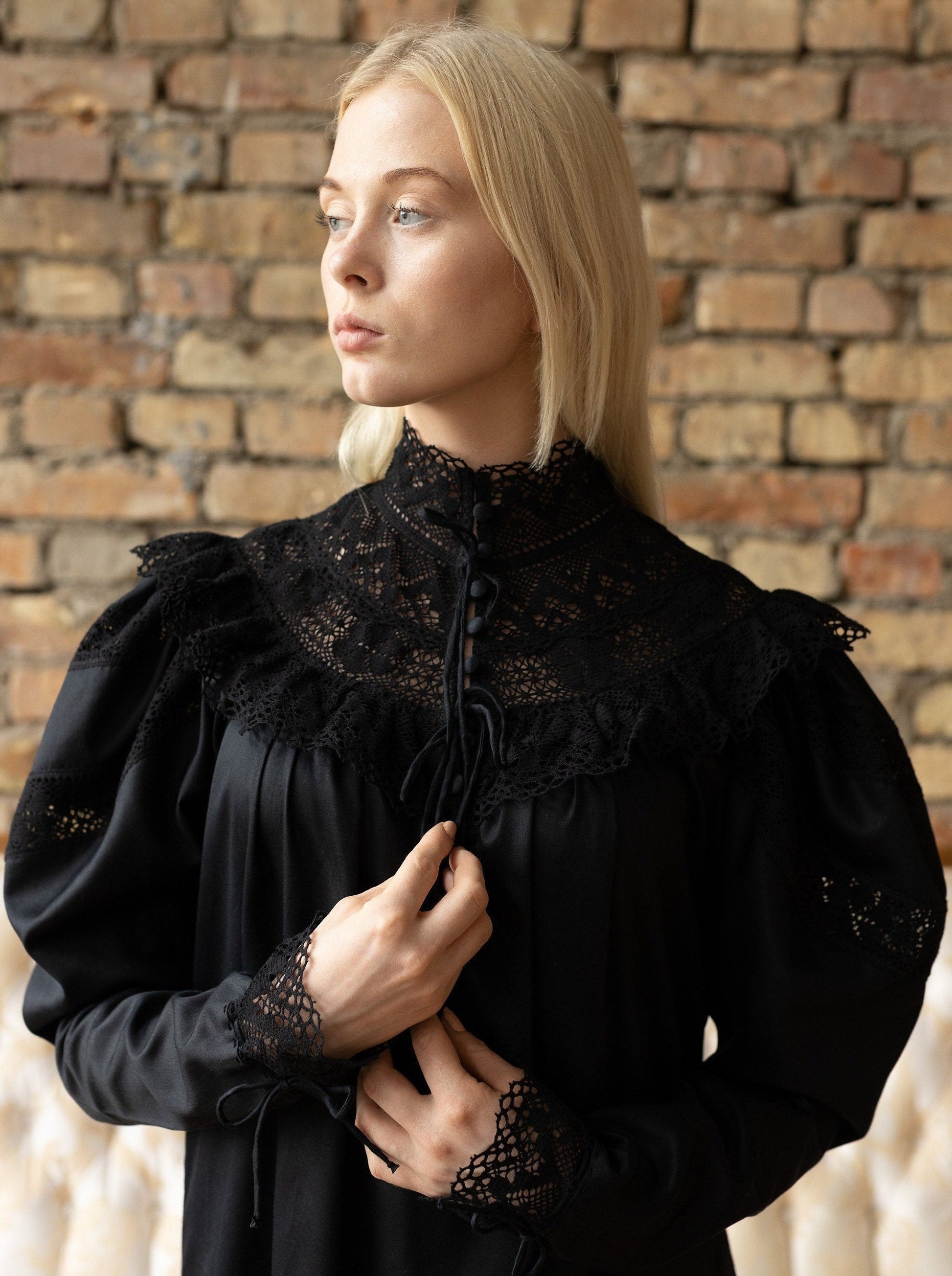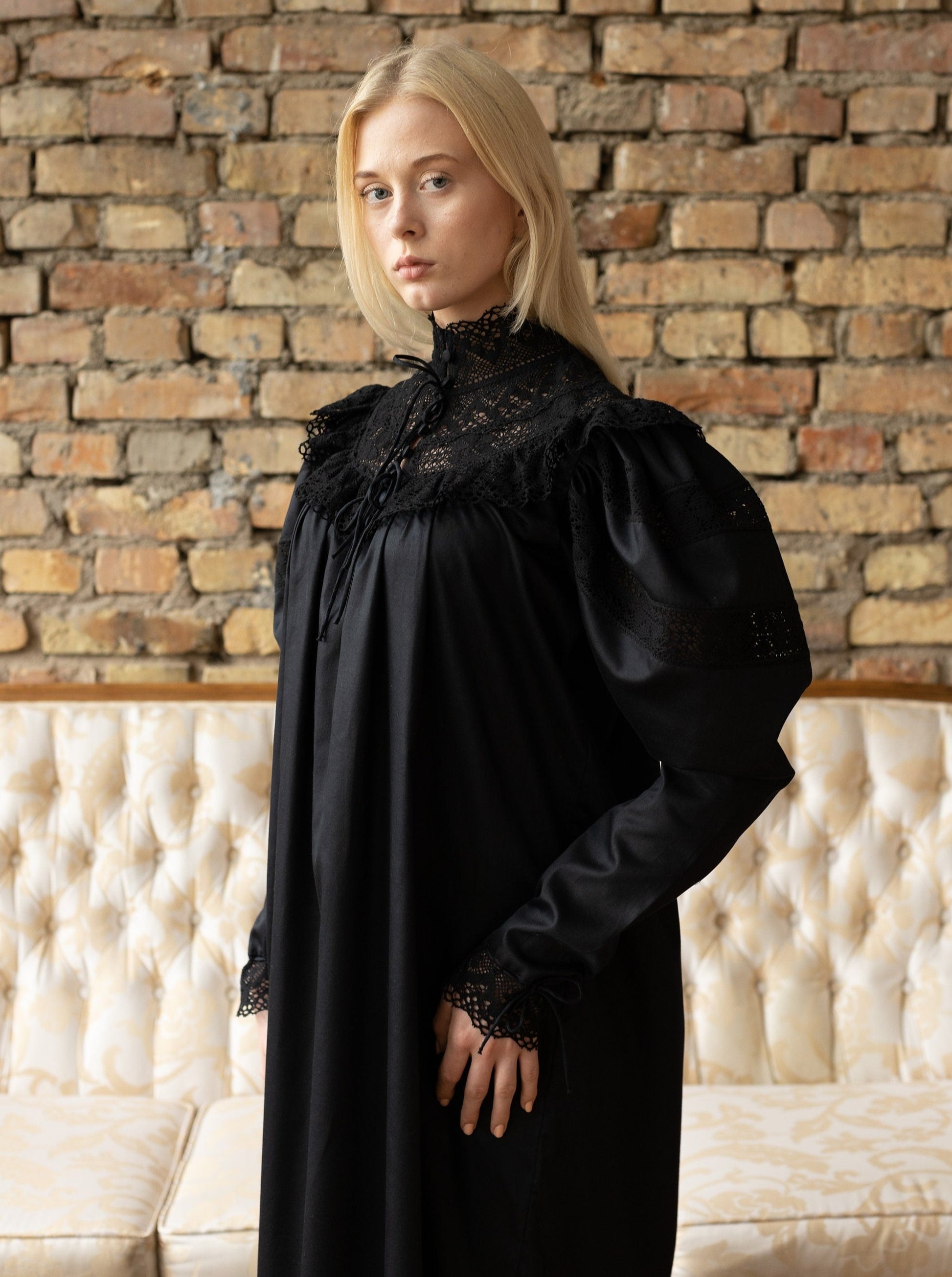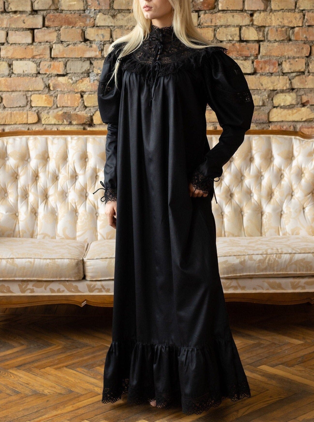 Beautiful soft sateen cotton nightgown that was inspired by Victorian Edwardian times from around 1900’s. In those days during the grim and long English winter evenings women retreated in the luxury and coziness of their long cotton nightdresses. Enjoying their favorite book in front of an open fire they emanated an intoxicating fragrance of subtle feminine beauty and hidden sensuality.