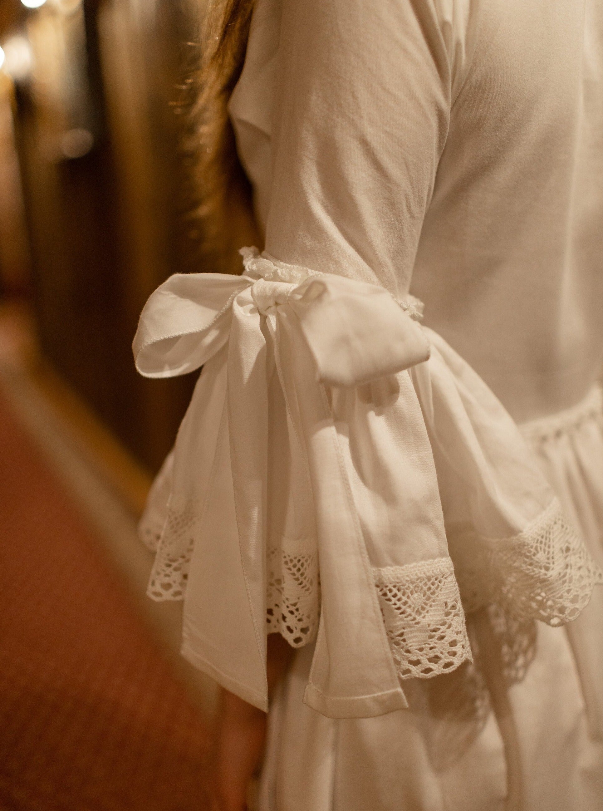 This unique and exquisite robe is inspired by the abundance and flirtiness of Rococo. Rococo was the aristocratic style of France - it is elegant, full with ruffles, lace and bows - altogether glorious.