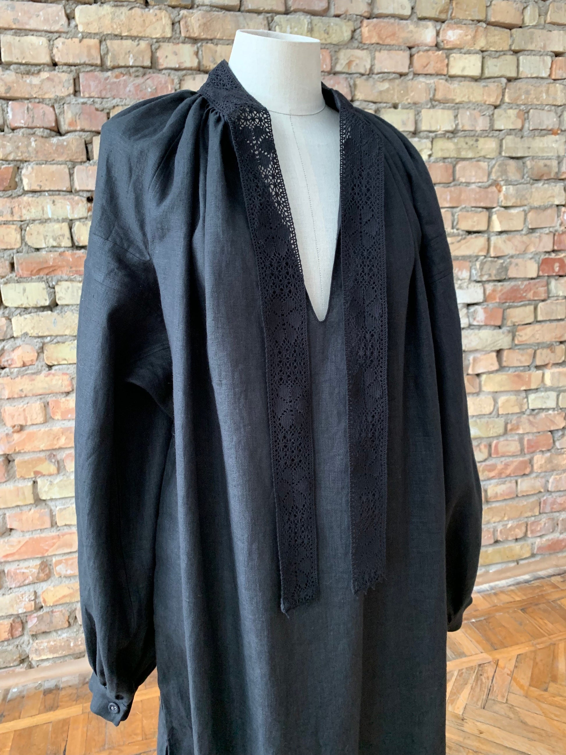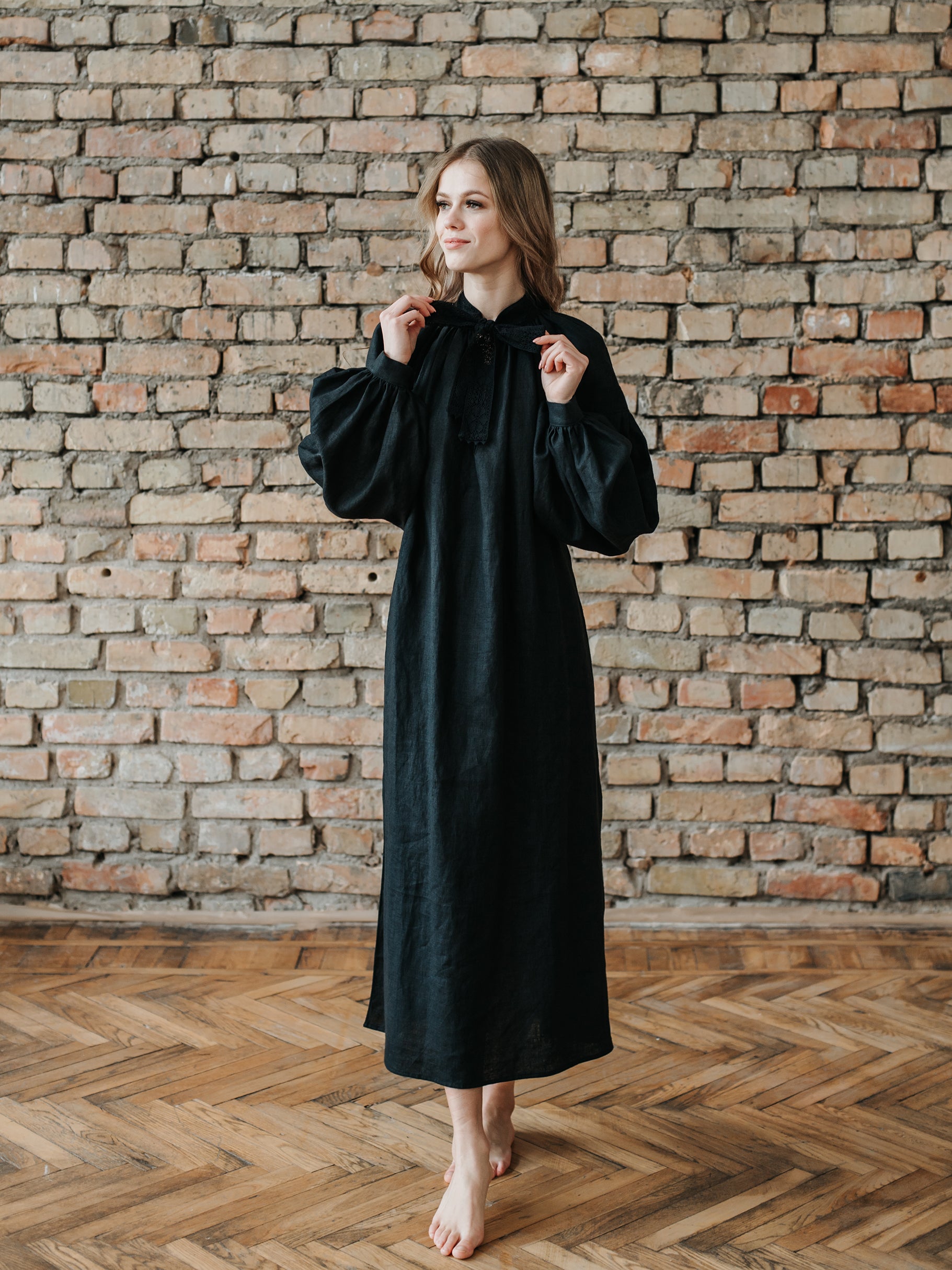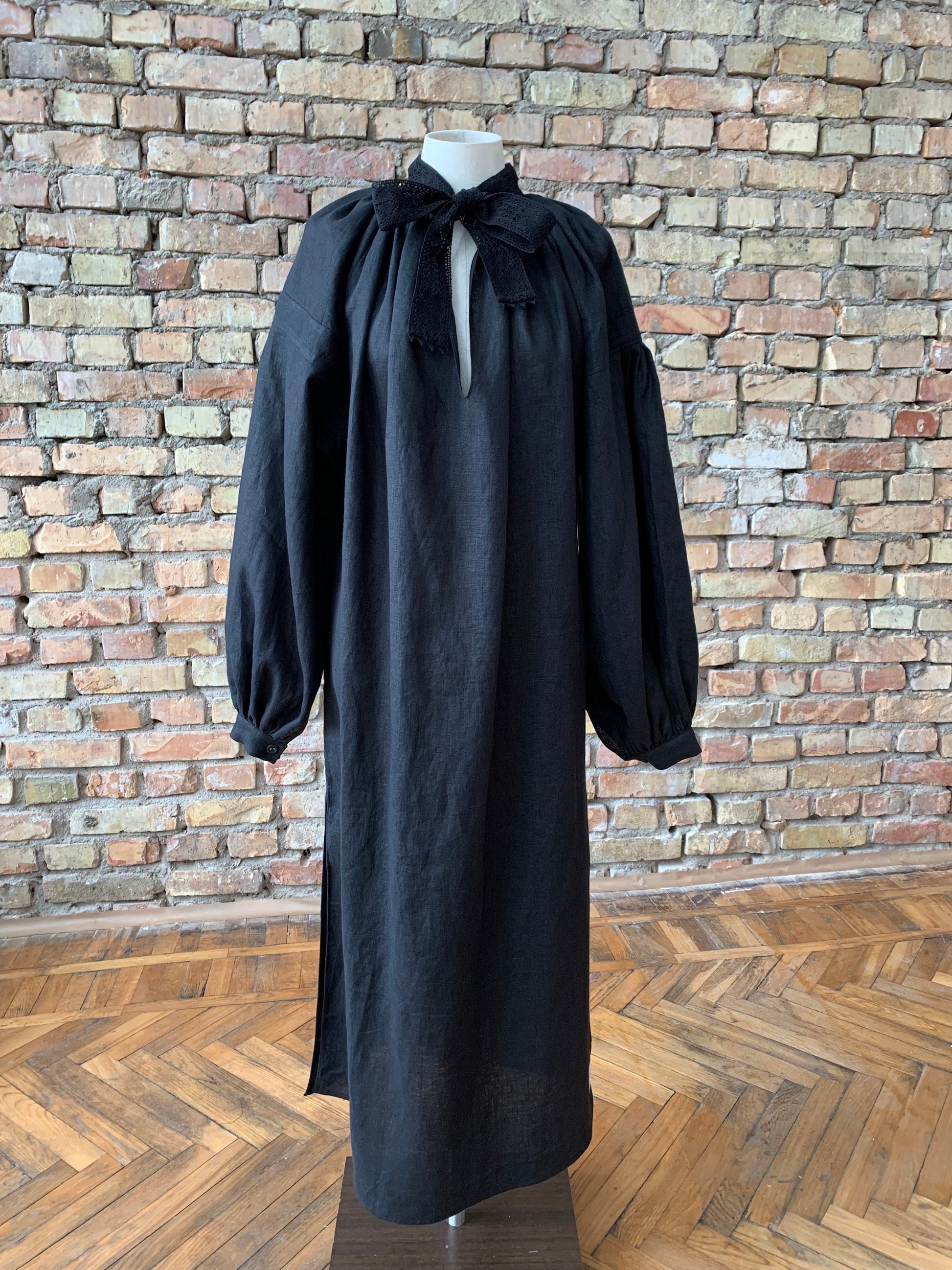 Piebalga Gown in Black Linen