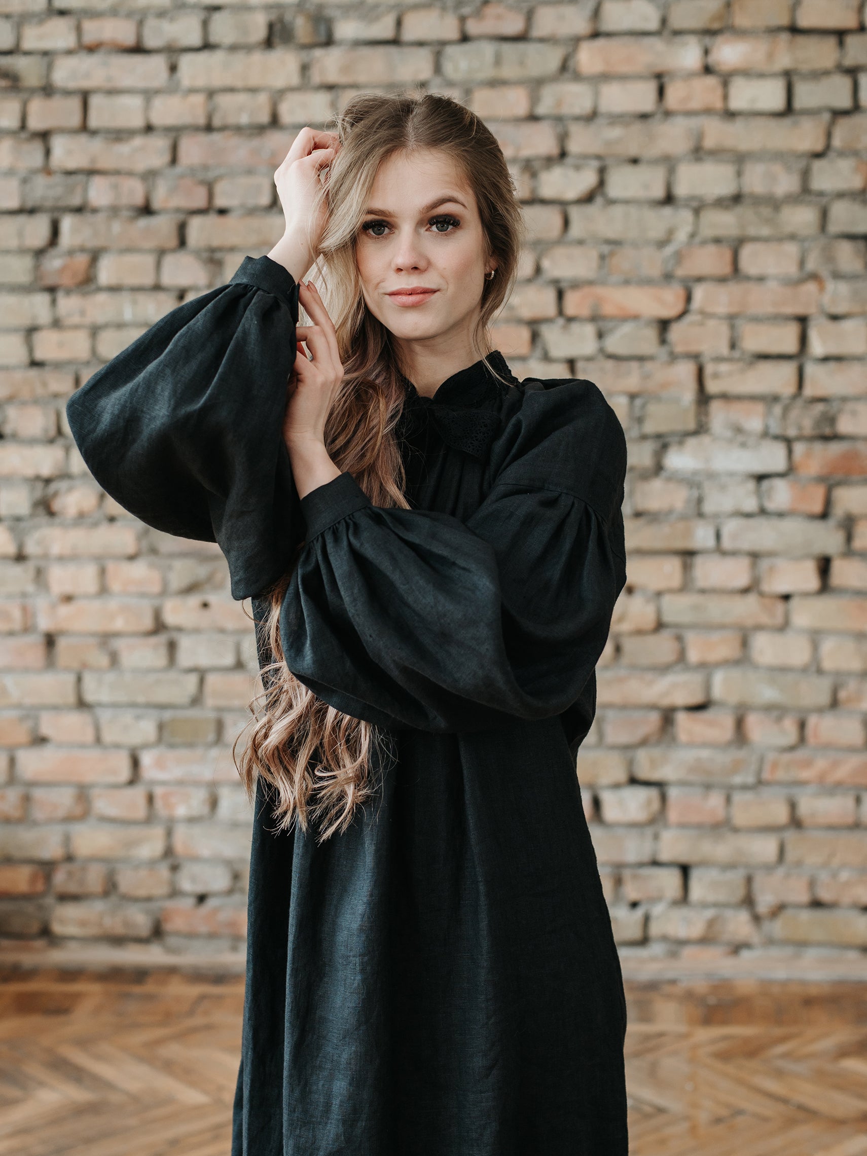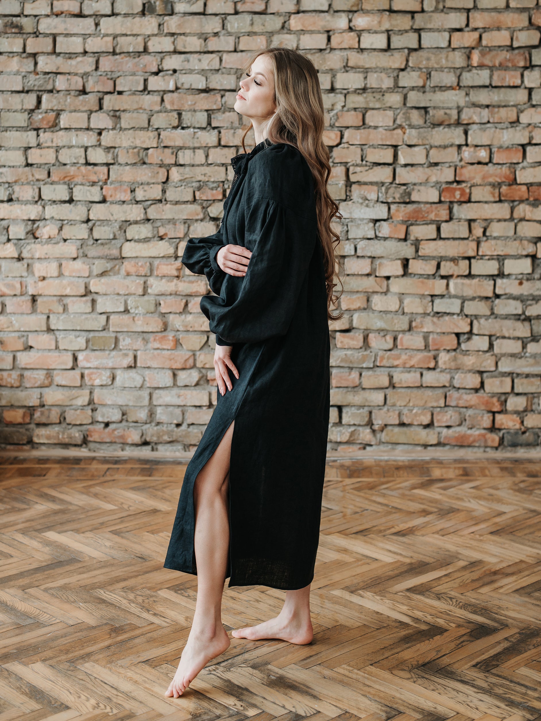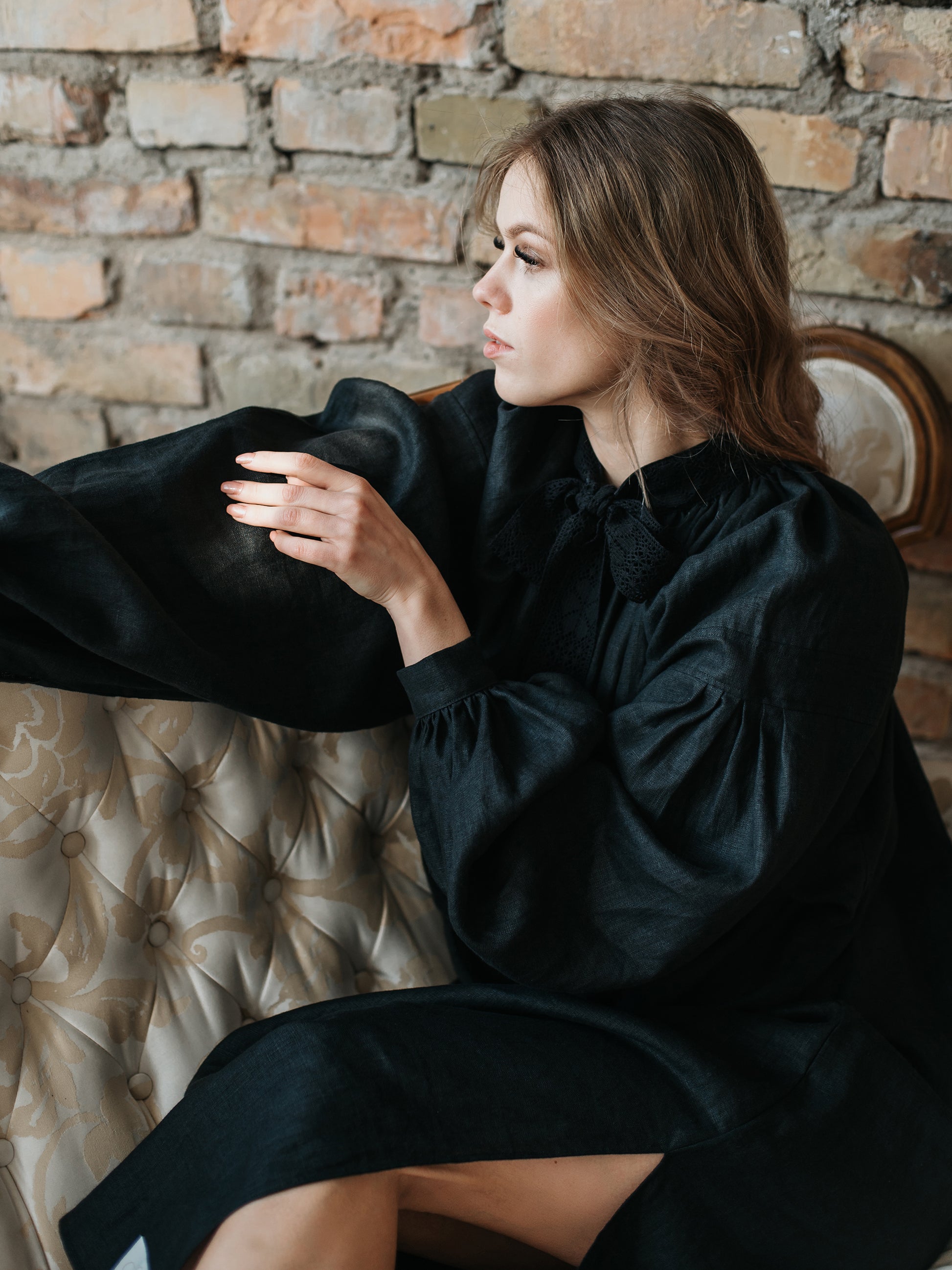 Piebalga Gown in Black Linen