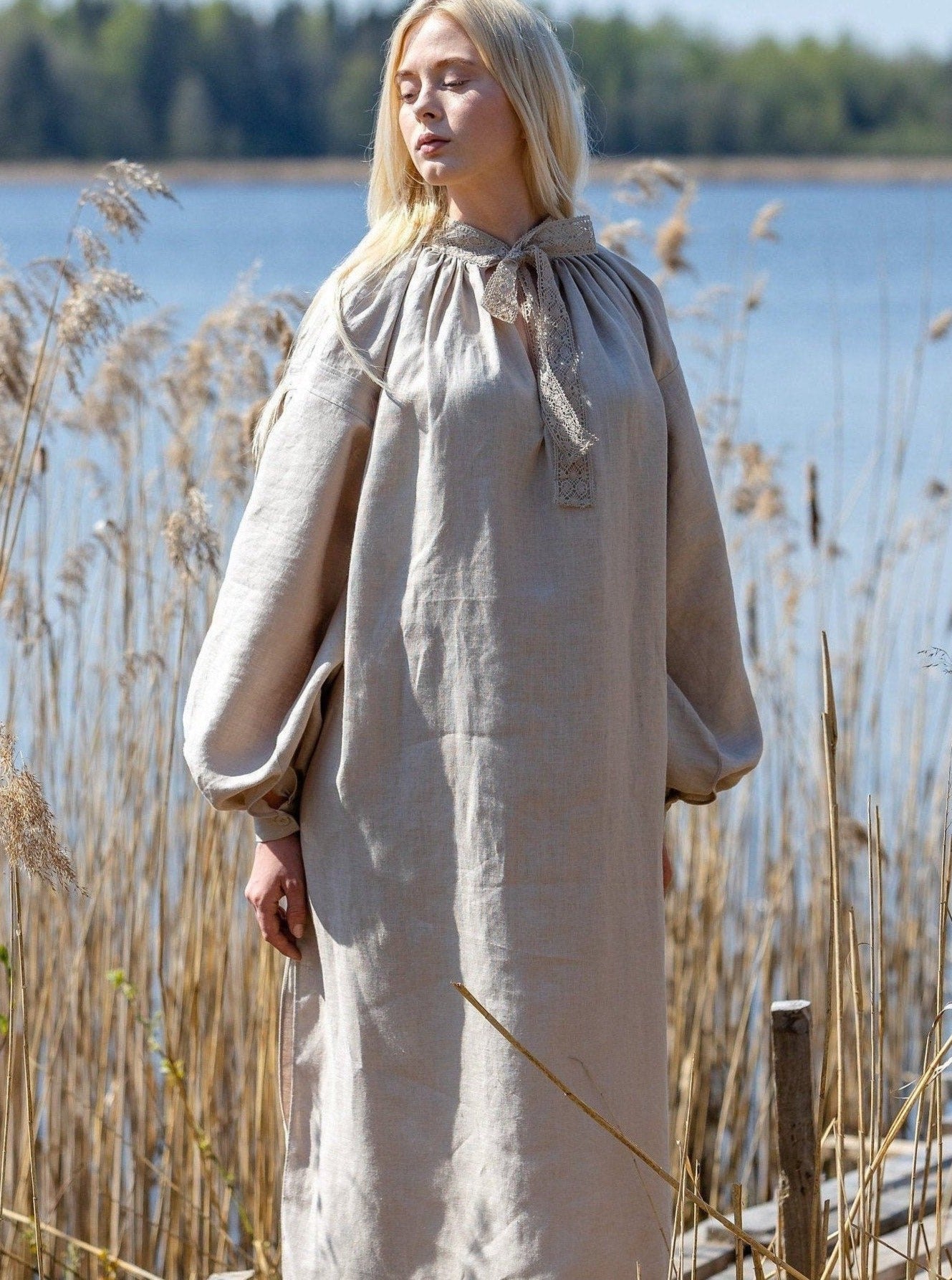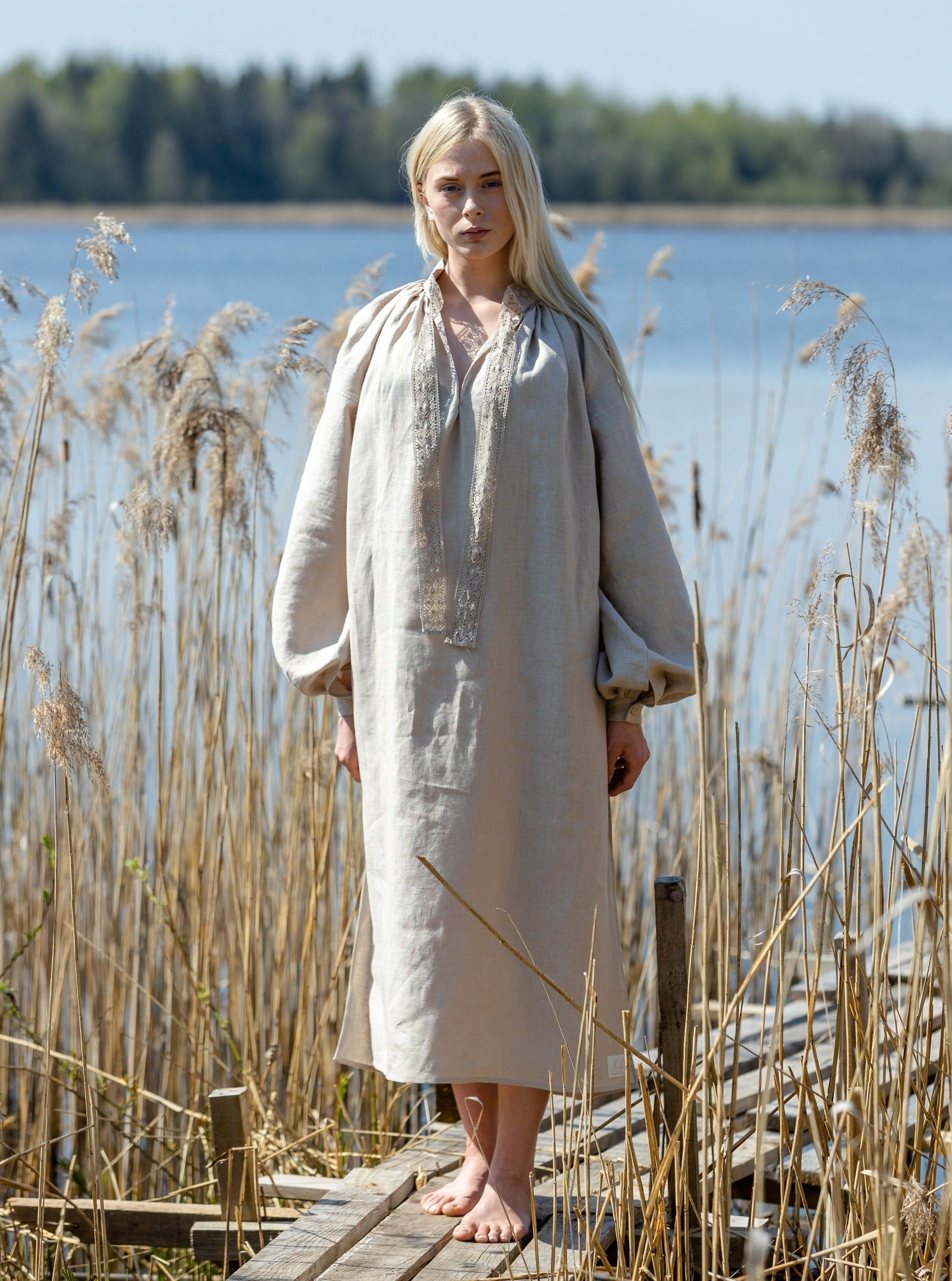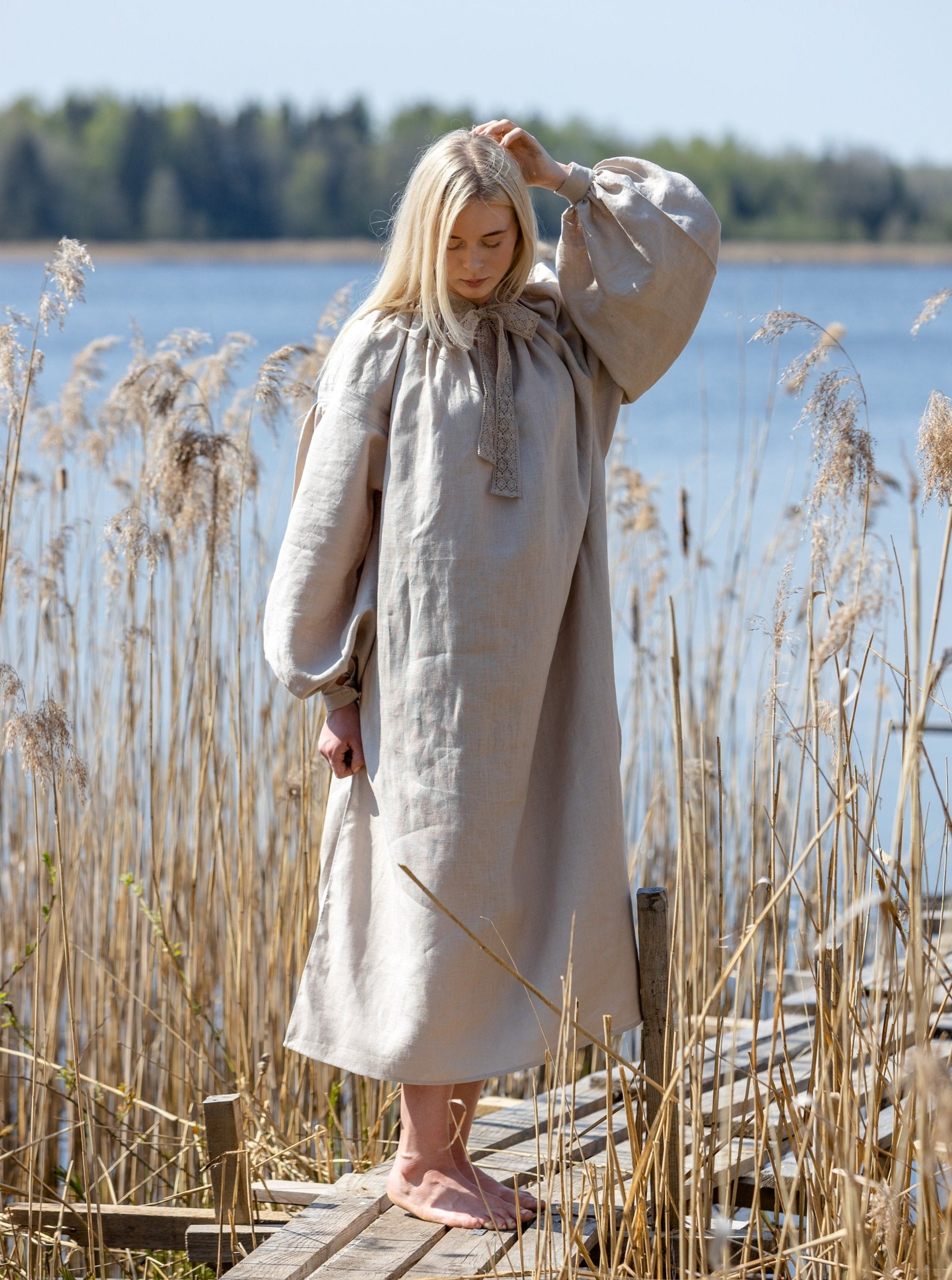 This is a pure linen traditional Latvian gown made from a copy of an original pattern borrowed at a Museum of Ancient Latvian Living in Vecpiebalga.