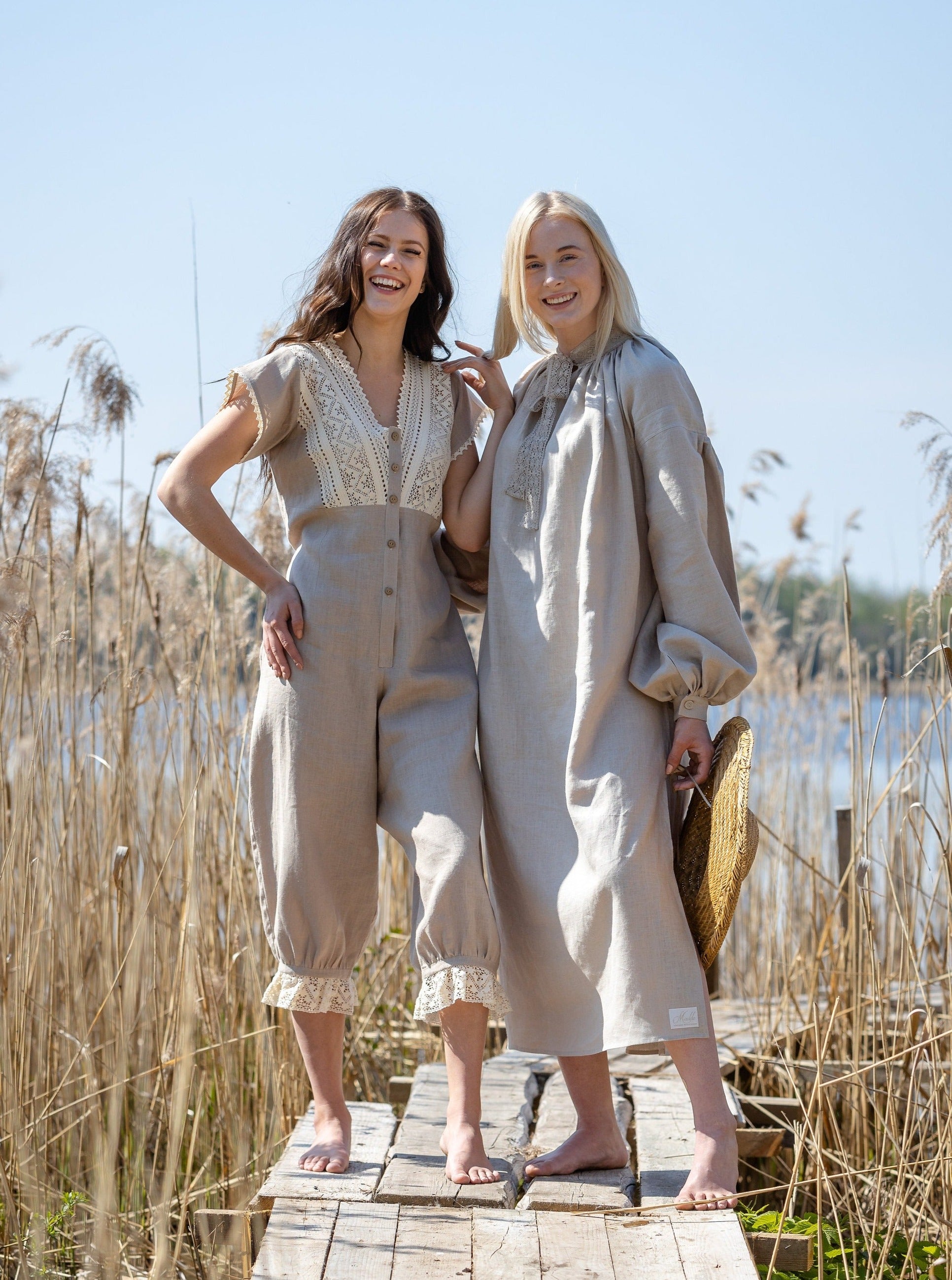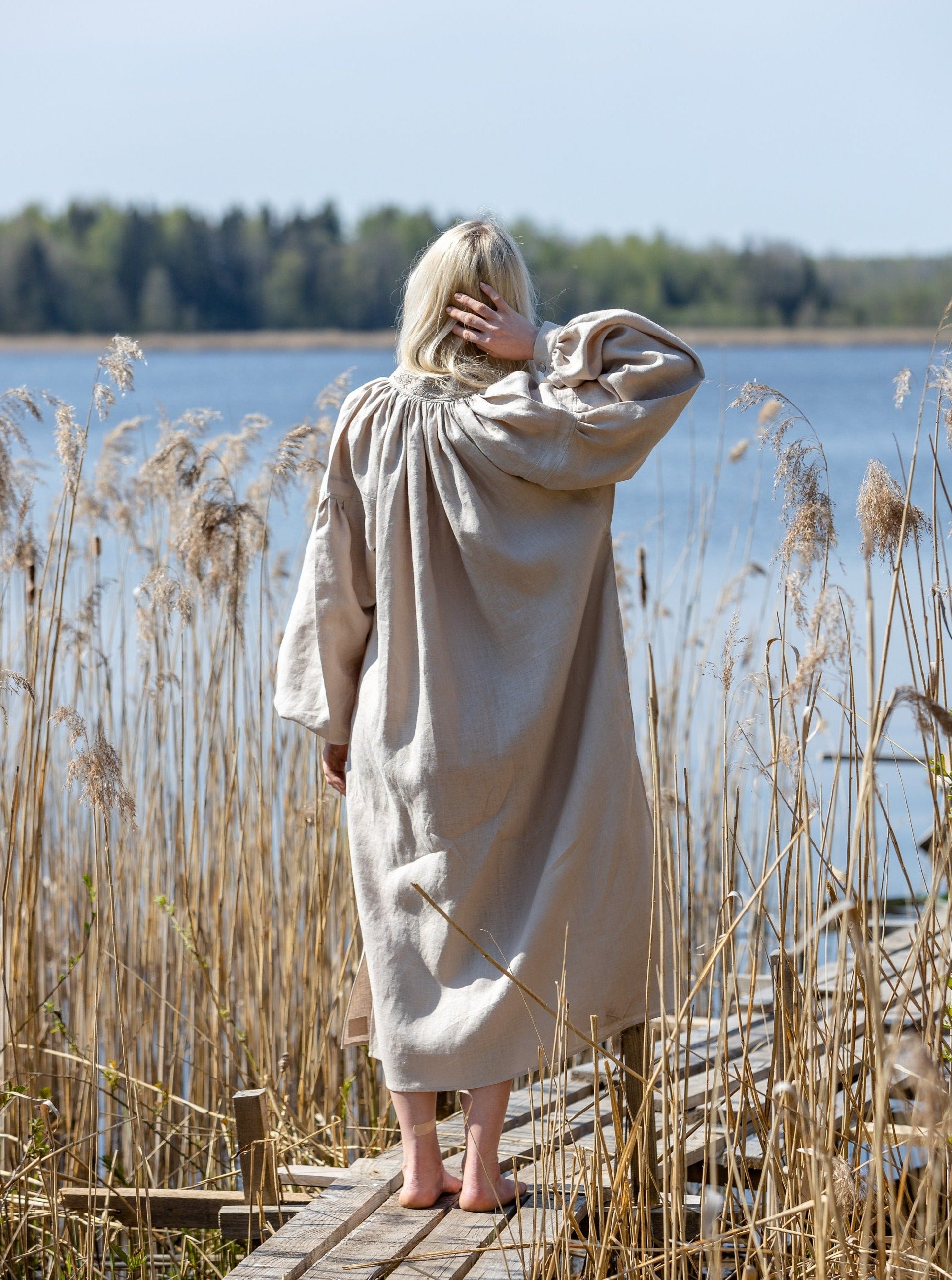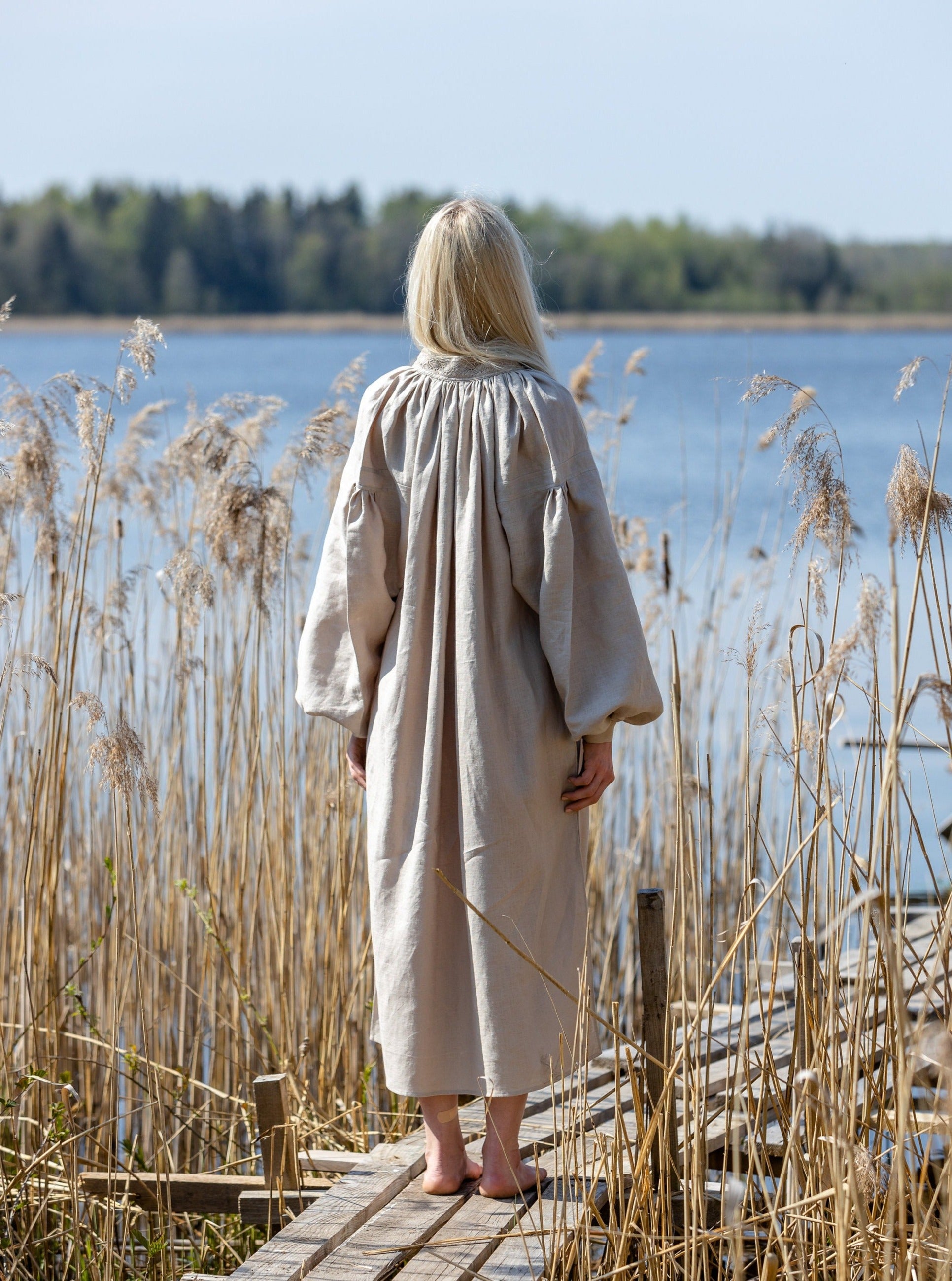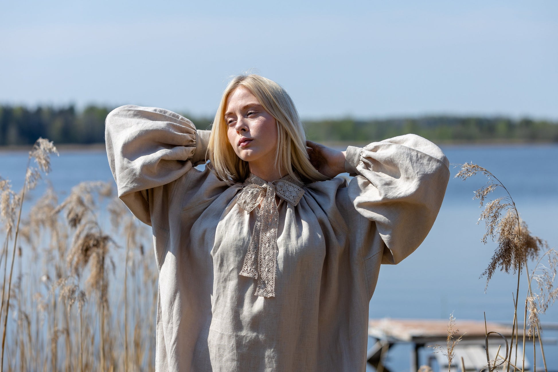 This is a pure linen traditional Latvian gown made from a copy of an original pattern borrowed at a Museum of Ancient Latvian Living in Vecpiebalga.
