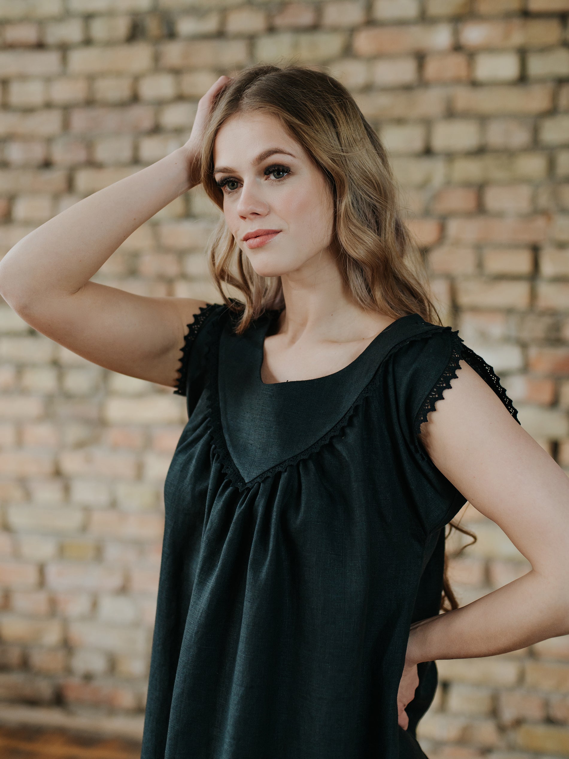The original pattern of this nightdress was found in a Latvian history museum in Vecpiebalga. We found that these kind of nighties were usually worn by young women from wealthy families living in the country. The soft and a little transparent white linen gives a feeling of abandon and lightness, making it just the perfect nightdress to embrace the summer. This nightdress will for granted bring the carelessness of a warm summer night in the country. Can you already feel the smell of a hay stack...?