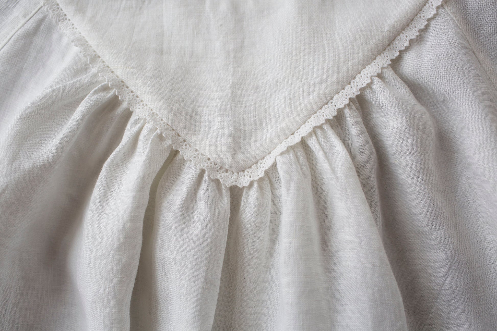 The original pattern of this nightdress was found in a Latvian history museum in Vecpiebalga. We found that these kind of nighties were usually worn by young women from wealthy families living in the country. The soft and a little transparent white linen gives a feeling of abandon and lightness, making it just the perfect nightdress to embrace the summer. This nightdress will for granted bring the carelessness of a warm summer night in the country. Can you already feel the smell of a hay stack...?